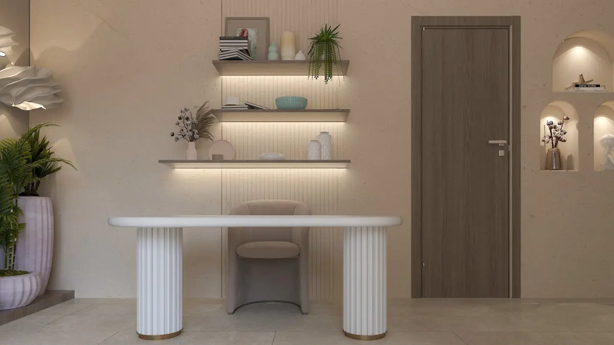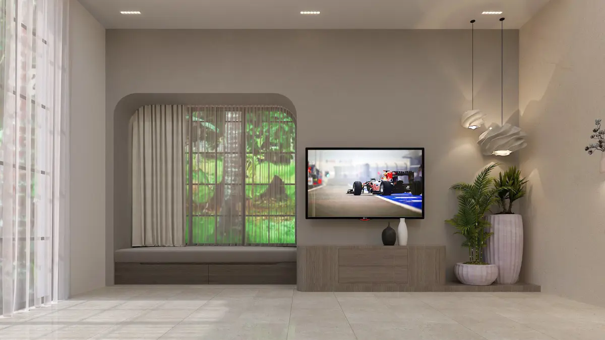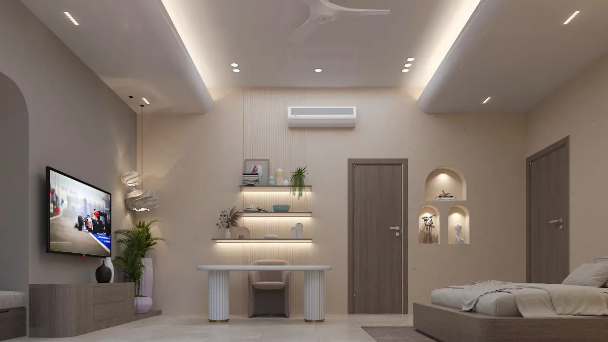 Bedroom /Boho Bedroom with tv unit, Study Table and Window chair sitting