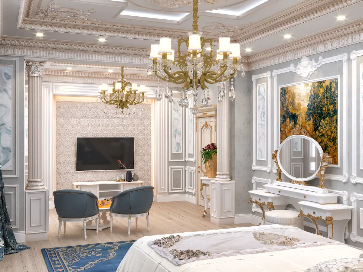 The bedroom is made in a modern classic style. All models are included, textures, materials and lights are set for Corona rendering !!!