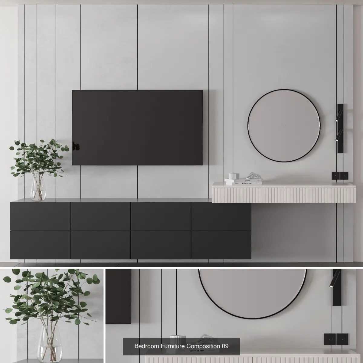This collection include 5 Different Set of bedroom composition ( Tv wall - Mirror - Dressingtable)