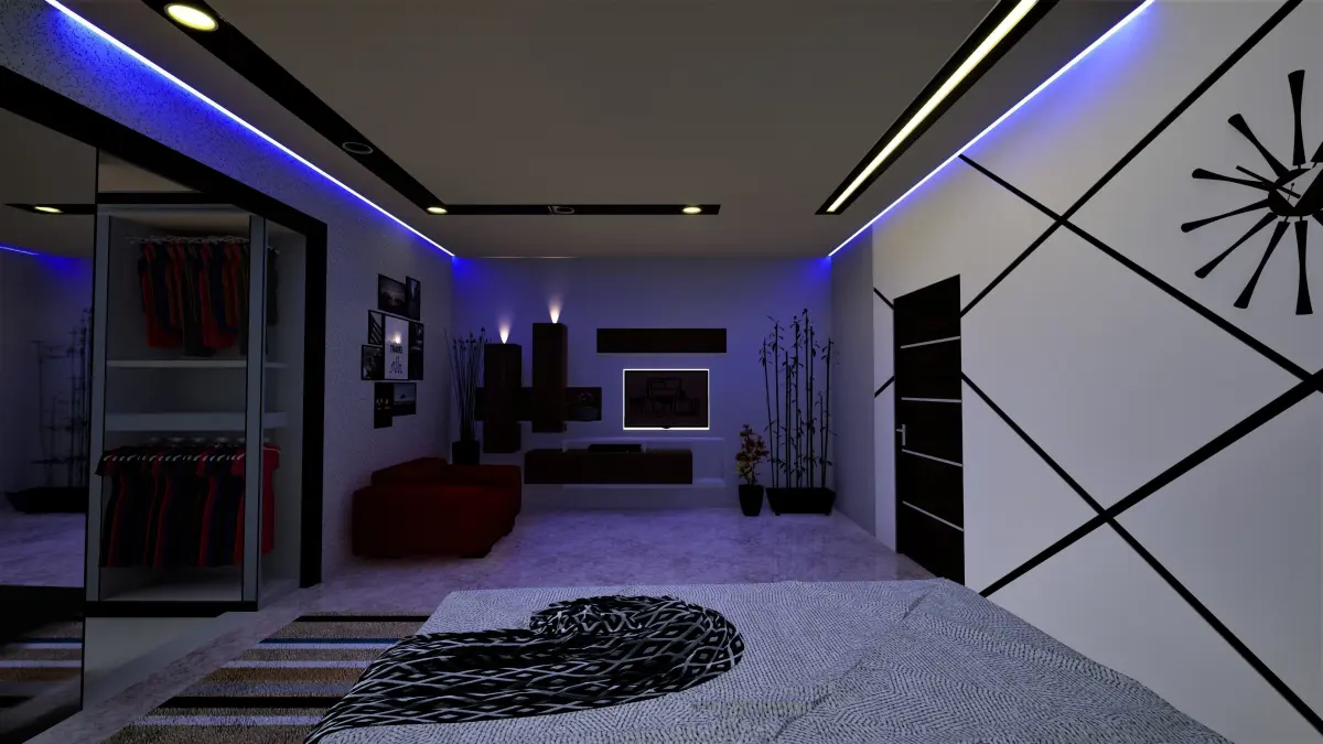 - Celling Light (Luxury Look)*TV Stand with TV, Lighting Units*Indoor Plantings