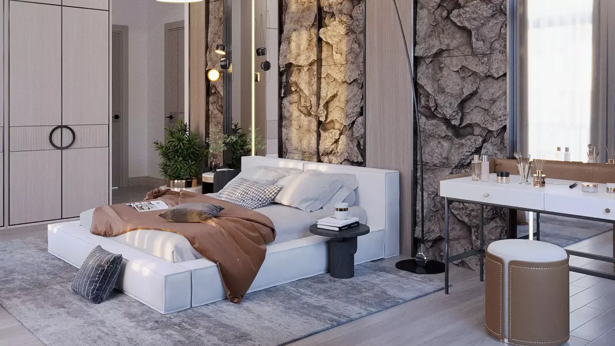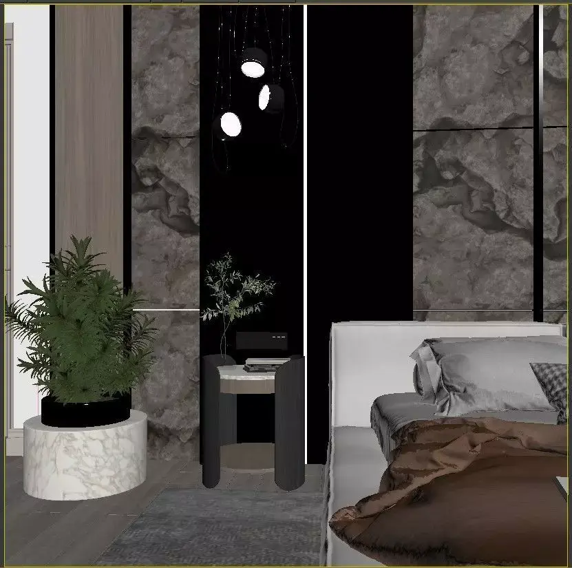 This is a high-quality Modern Bedroom interior design scene, created with a focus on comfort, realism, and contemporary aesthetics. The scene reflects a calm and elegant atmosphere, making it ideal for architectural visualization, interior design presentations, and client-ready renders.