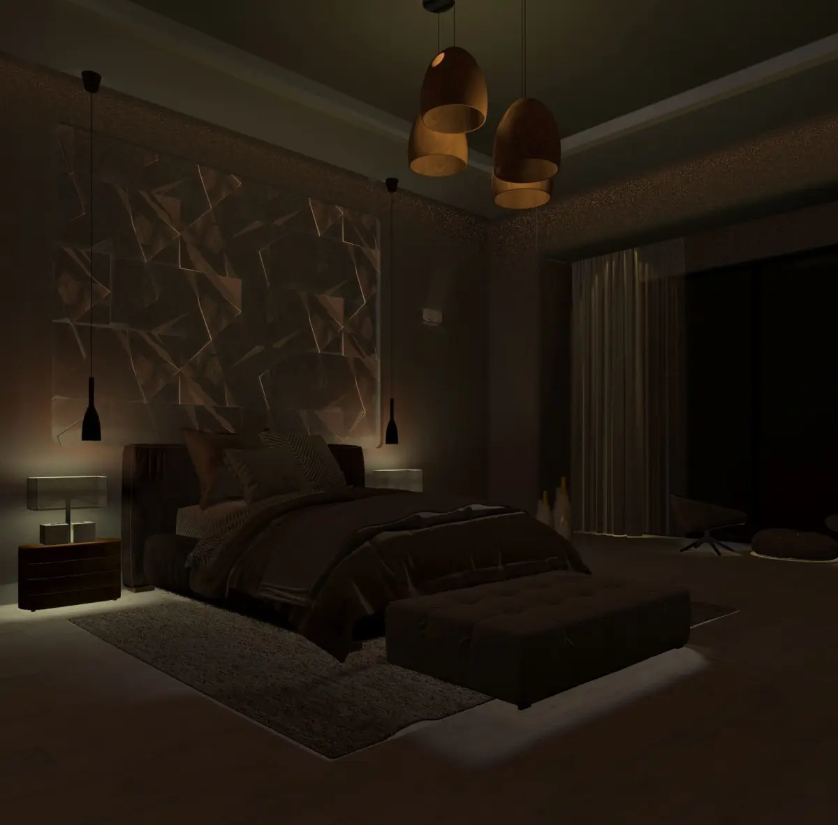 modern beedroom with great color and nice furniture , to suit all users ,as it countains attractive and modern designs,and by useing ggreat maps and lighting nice vray renderdimensions:hight:3.5mwidth:9 mlenght:5 m