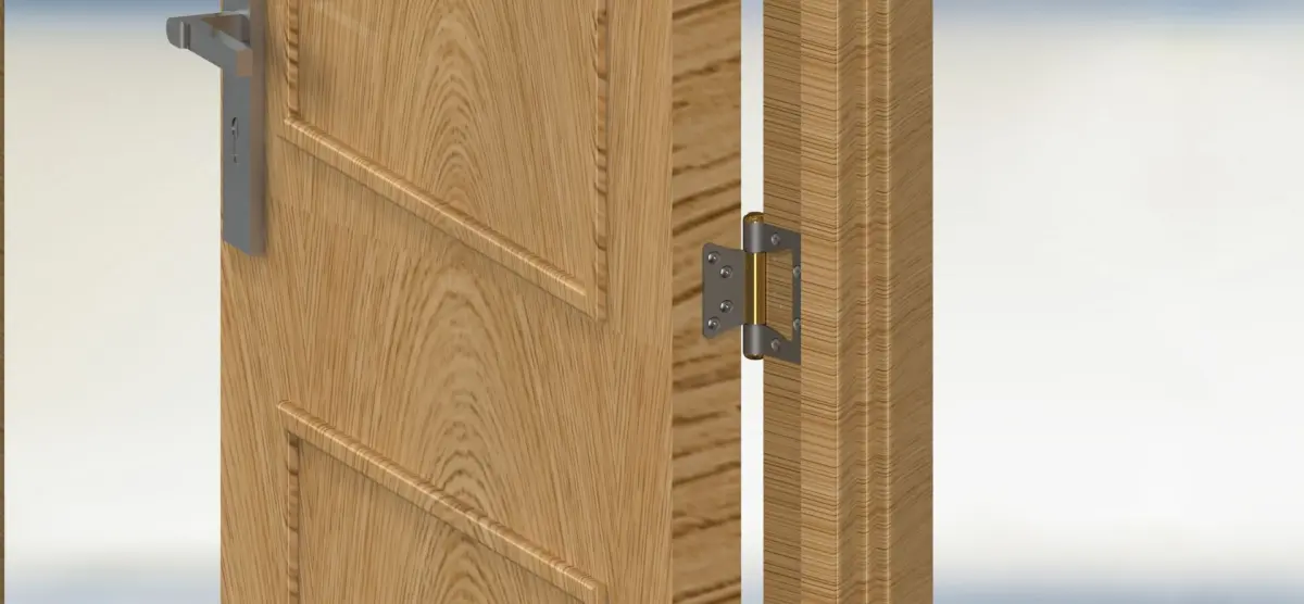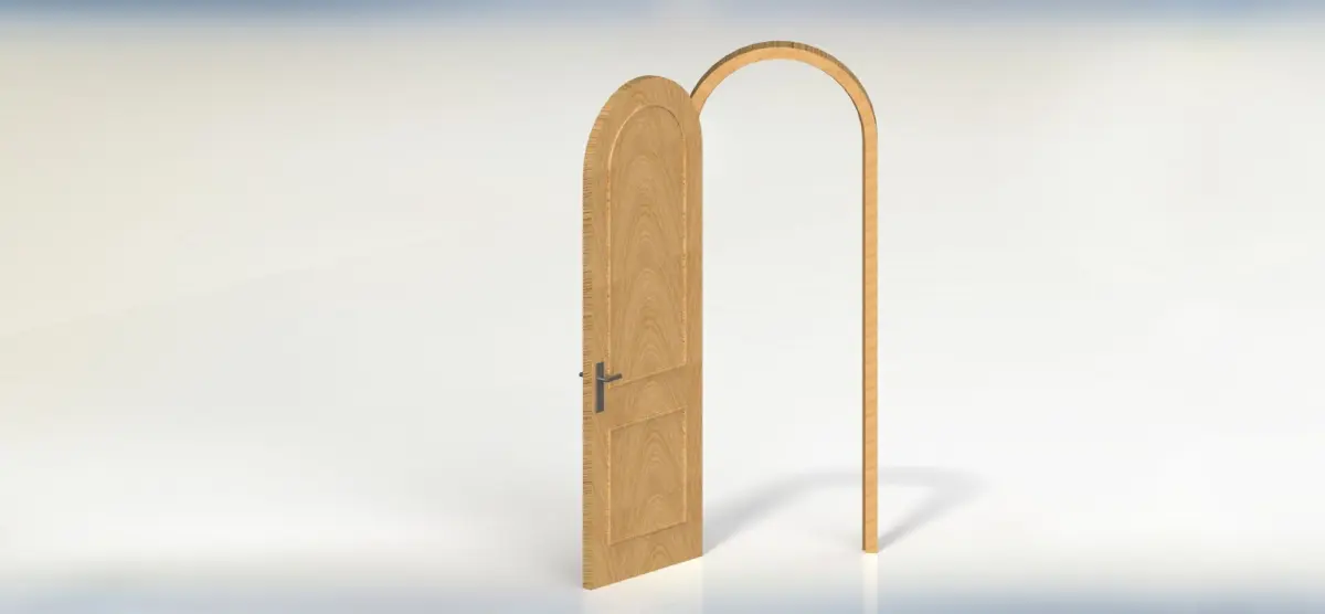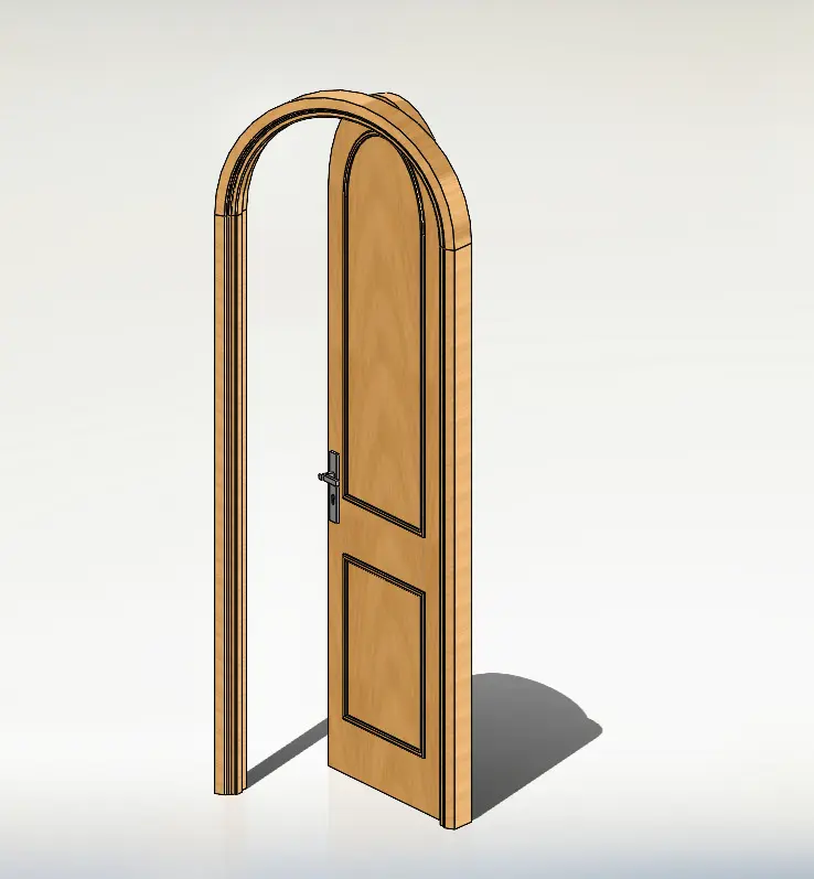 The wooden door is designed using SolidWorks software, with supported file formats including .SLDPART, .SLDASM, .SLDDRW, .STL, and .DWG.The door dimensions are 2500x850x55 mm.