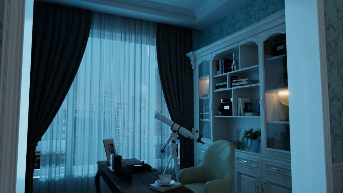 American-style bedroom with animated lights