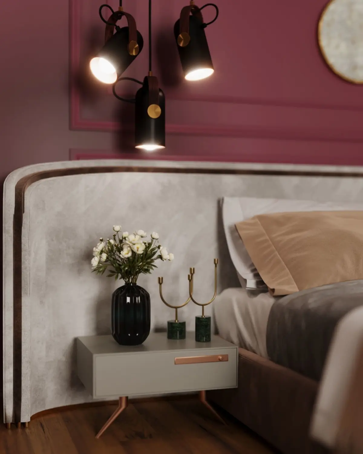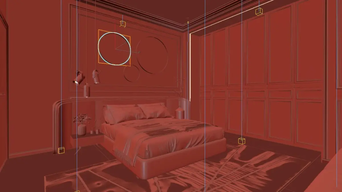 The bedroom interior comes with a scene, camera or lights, include only 3dmodel.