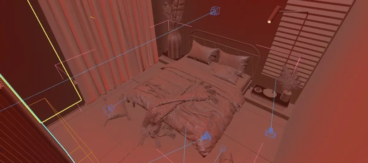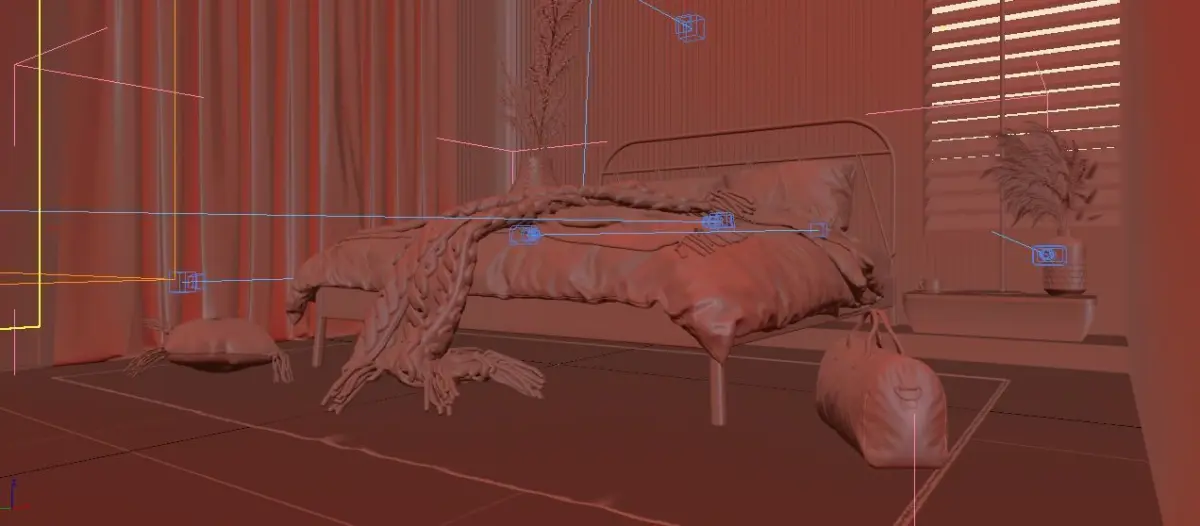 The bedroom interior comes with a scene, camera or lights, include only 3dmodel.