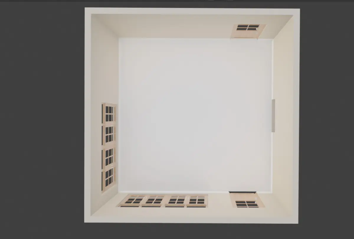 This is a high-quality, realistic 3D model of a modern minimalist bedroom interior designed for architectural visualization, virtual staging, games, and animation. The design features clean lines, neutral tones, and a simple layout that reflects contemporary style and functionality.