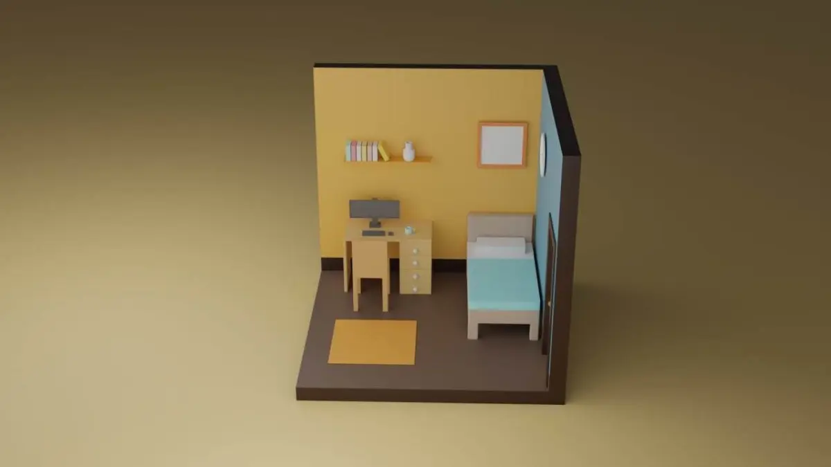 Bedroom room with bed and desk 3D model
