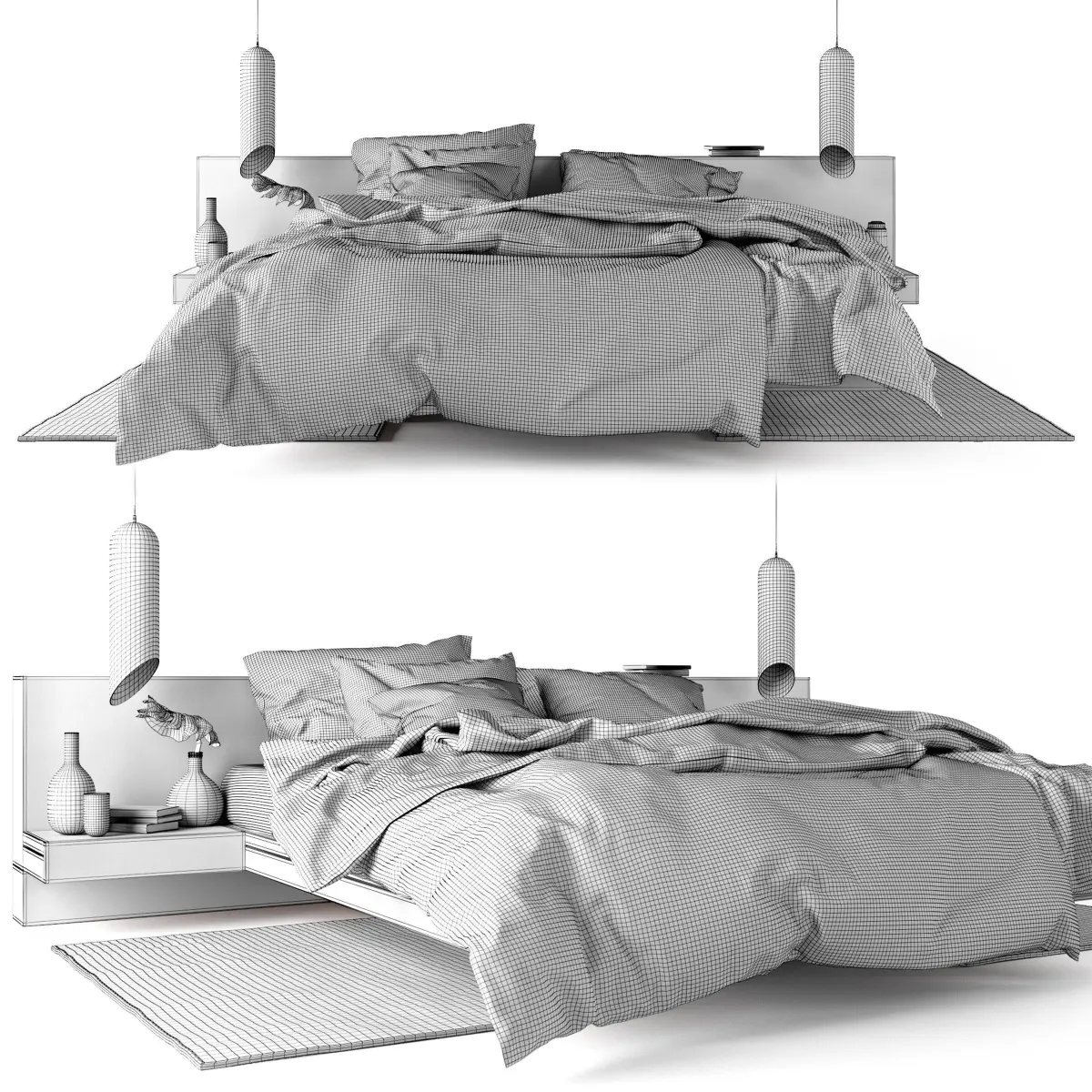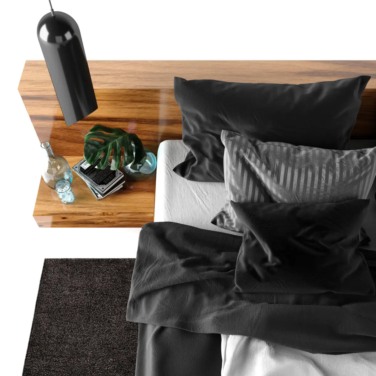 -Bed with bed linen-Carpet-Decor-Pipe Pendant Lamp