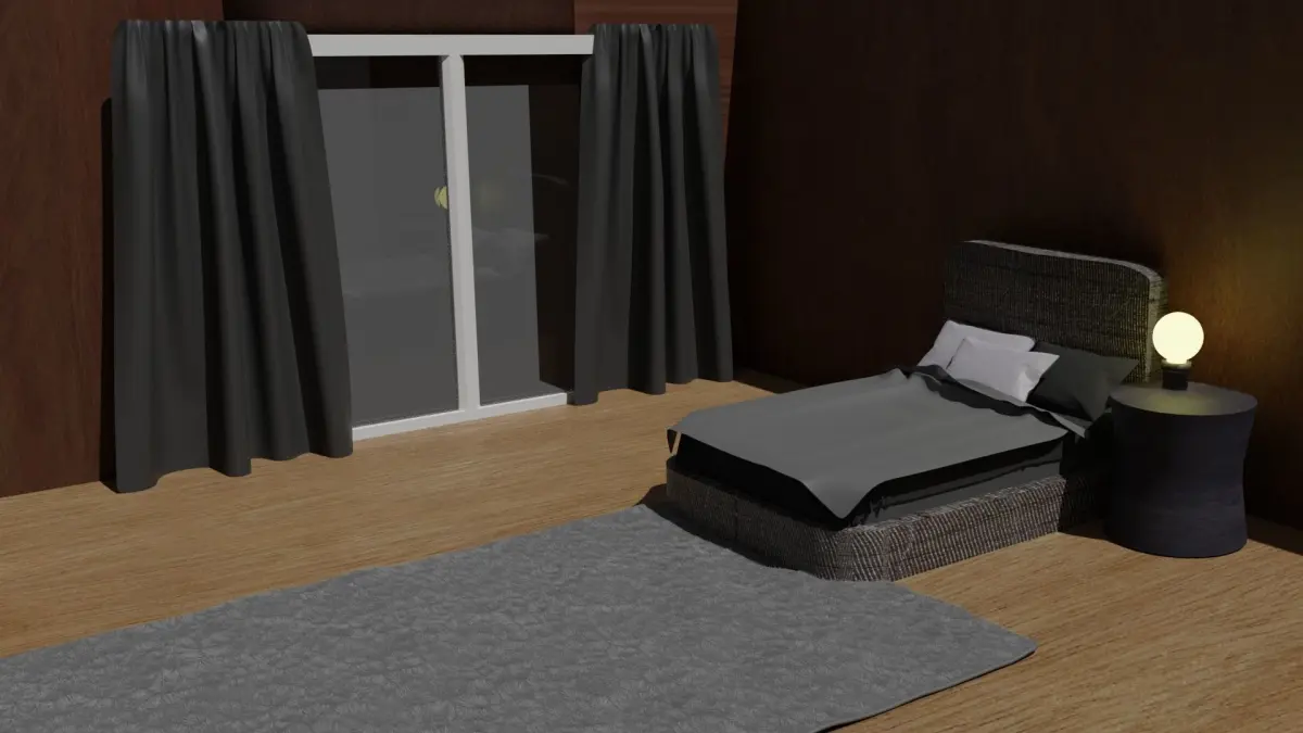 In .blend file , textures is imported, i couldn't do a texture file , in cycles render glass texture is working but in eevee render glass texture isn't working.I used PBR Texture's for wall and floor.I make carpet with particle system.