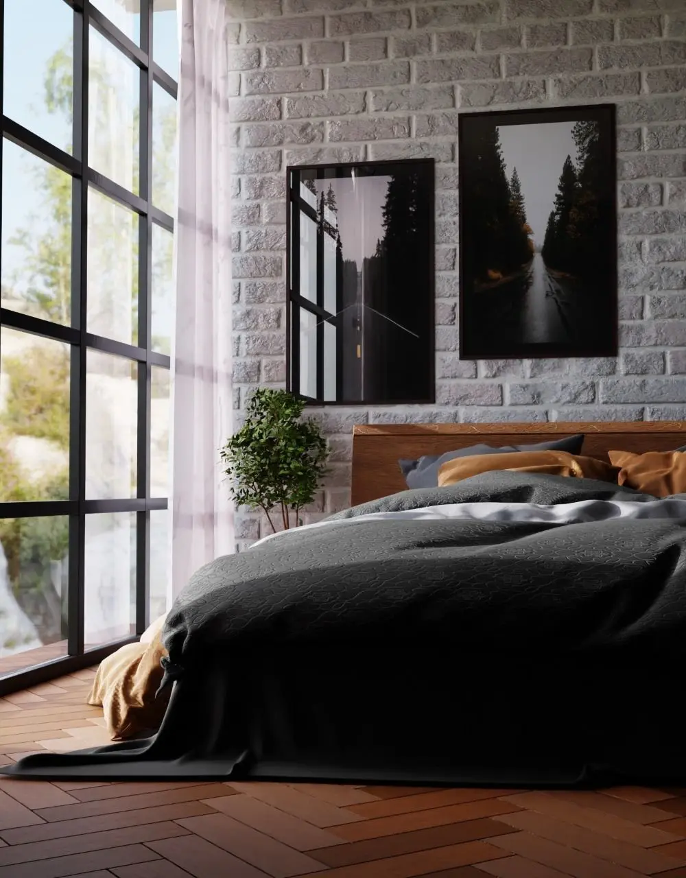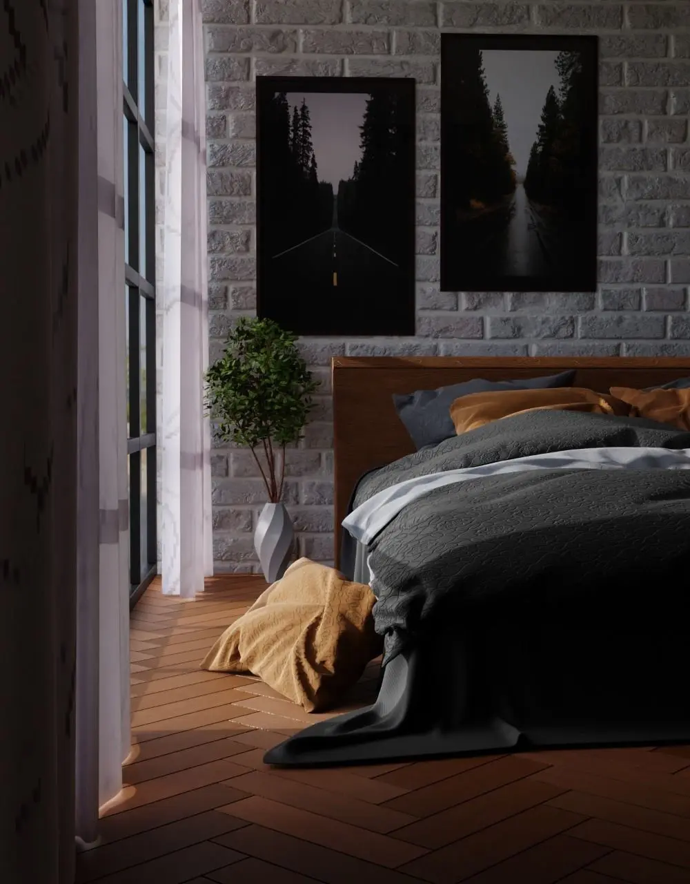 *curtain*King size bed*wood floor*brick texture*realistic glass shader