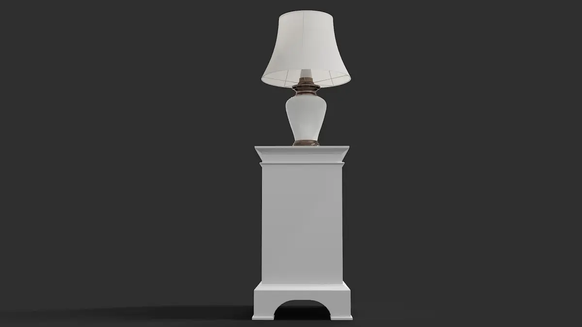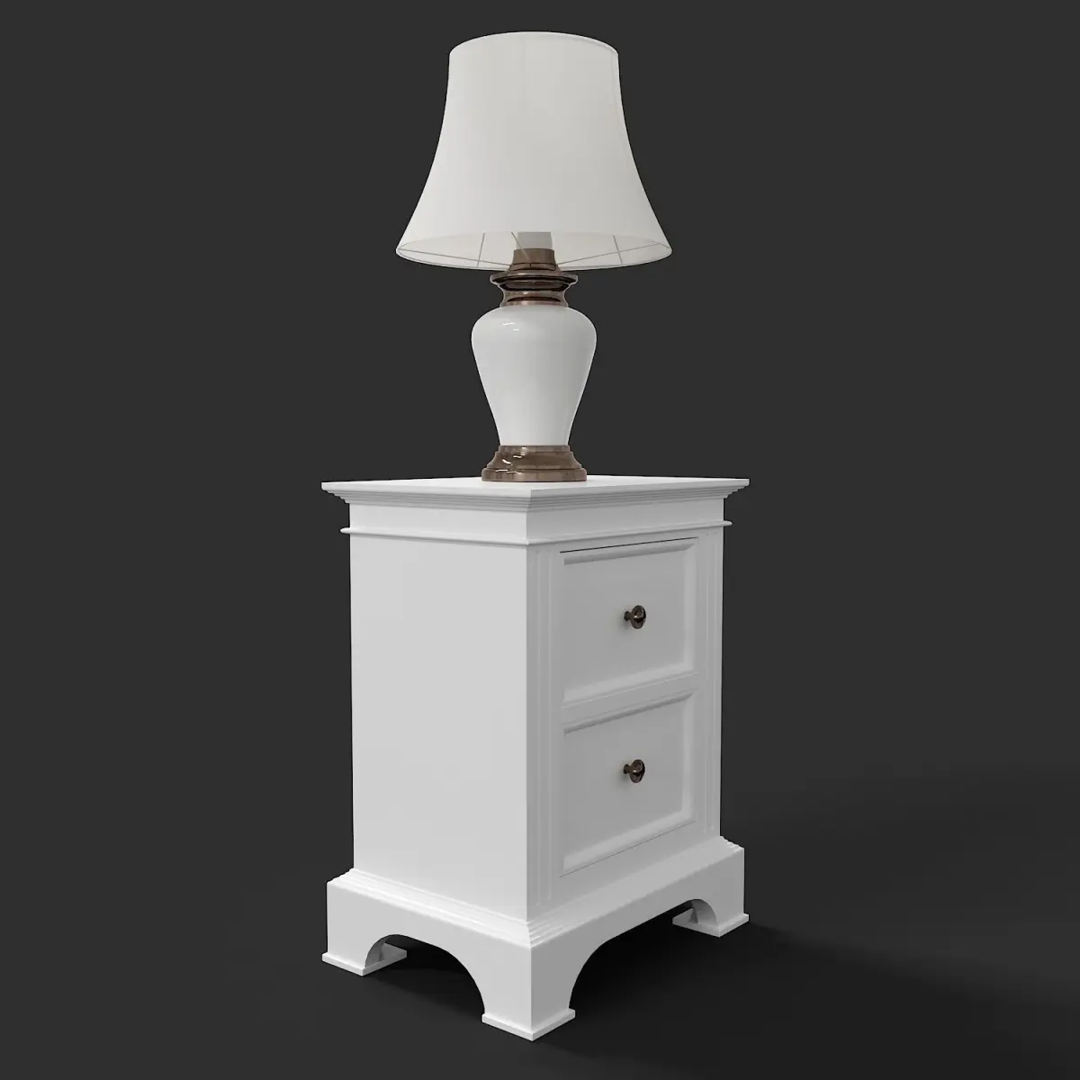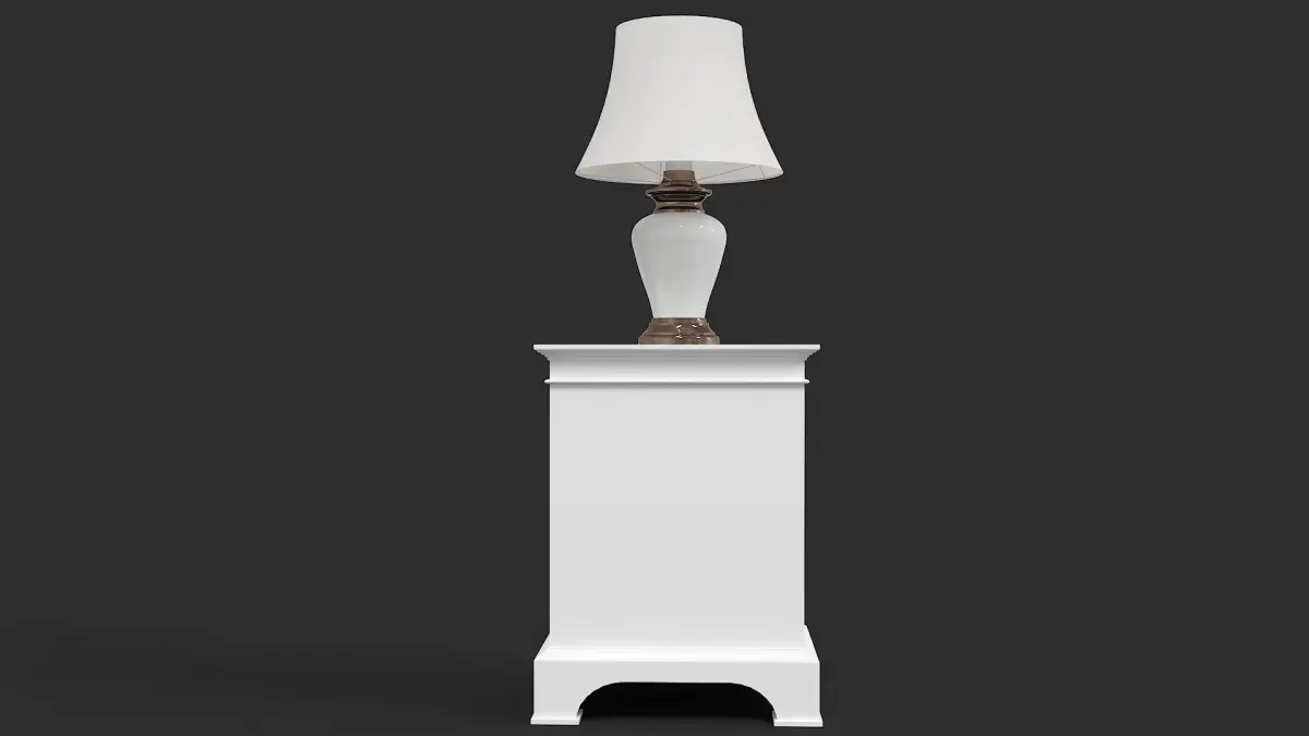 Classic floor lamp on the bedside table in classic English - American style.