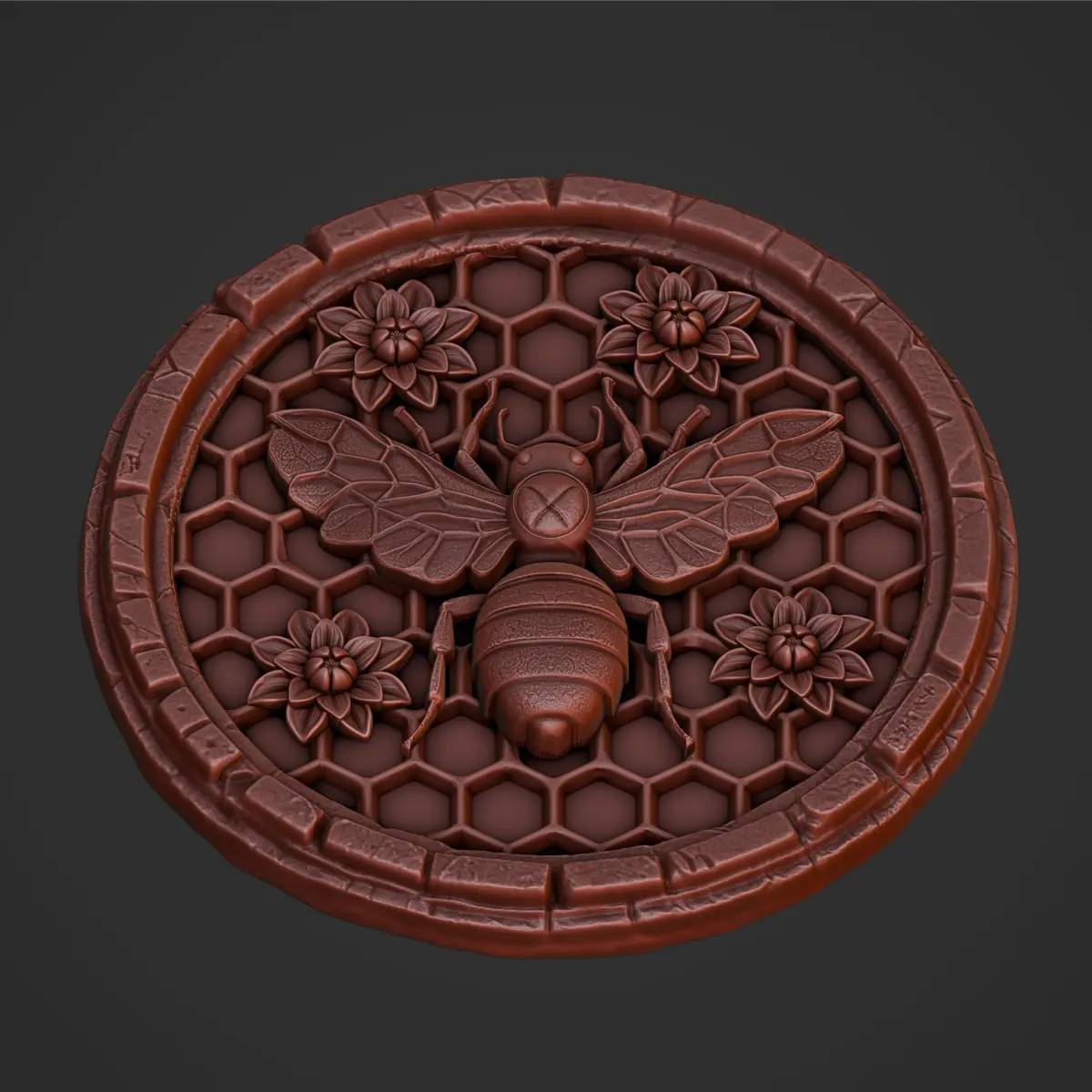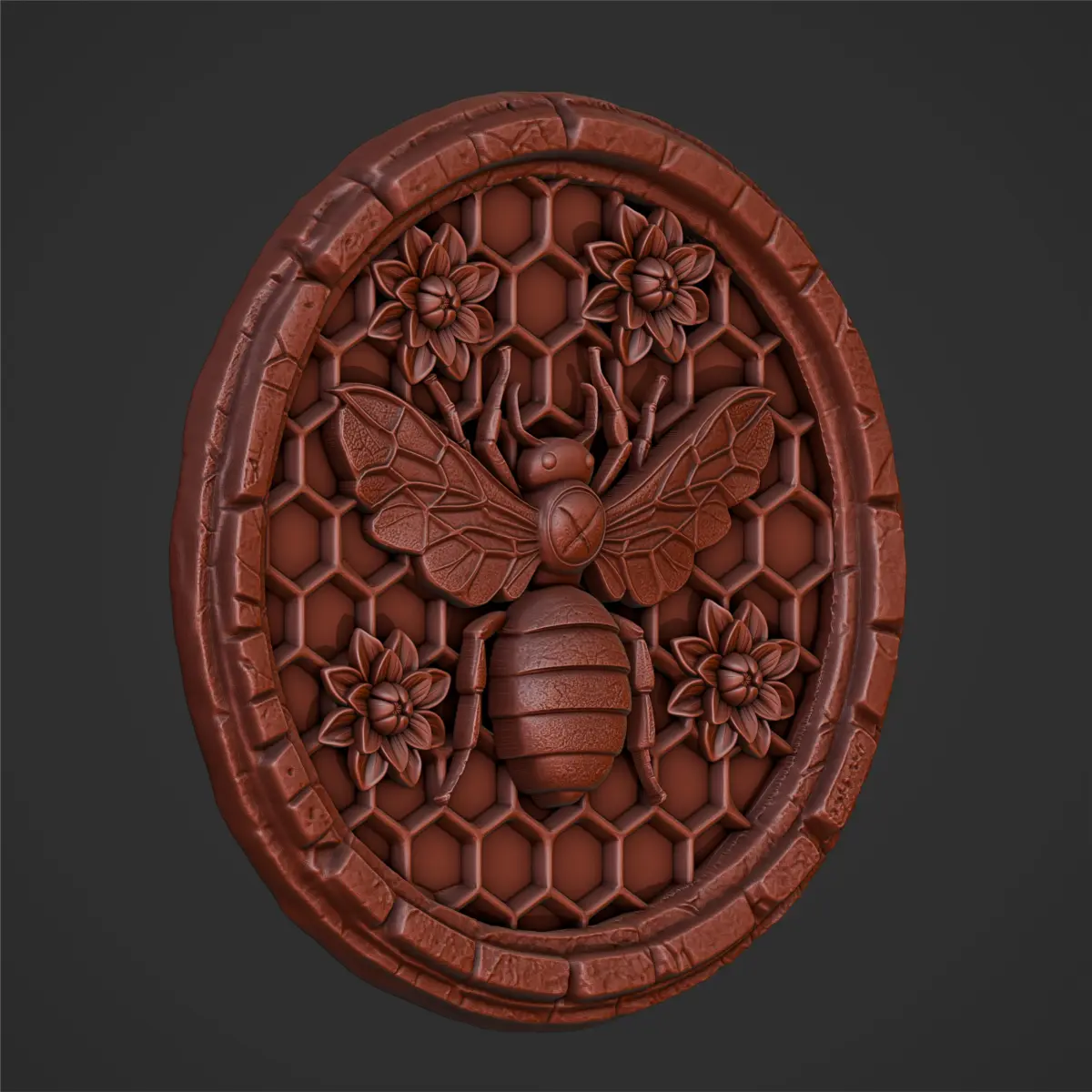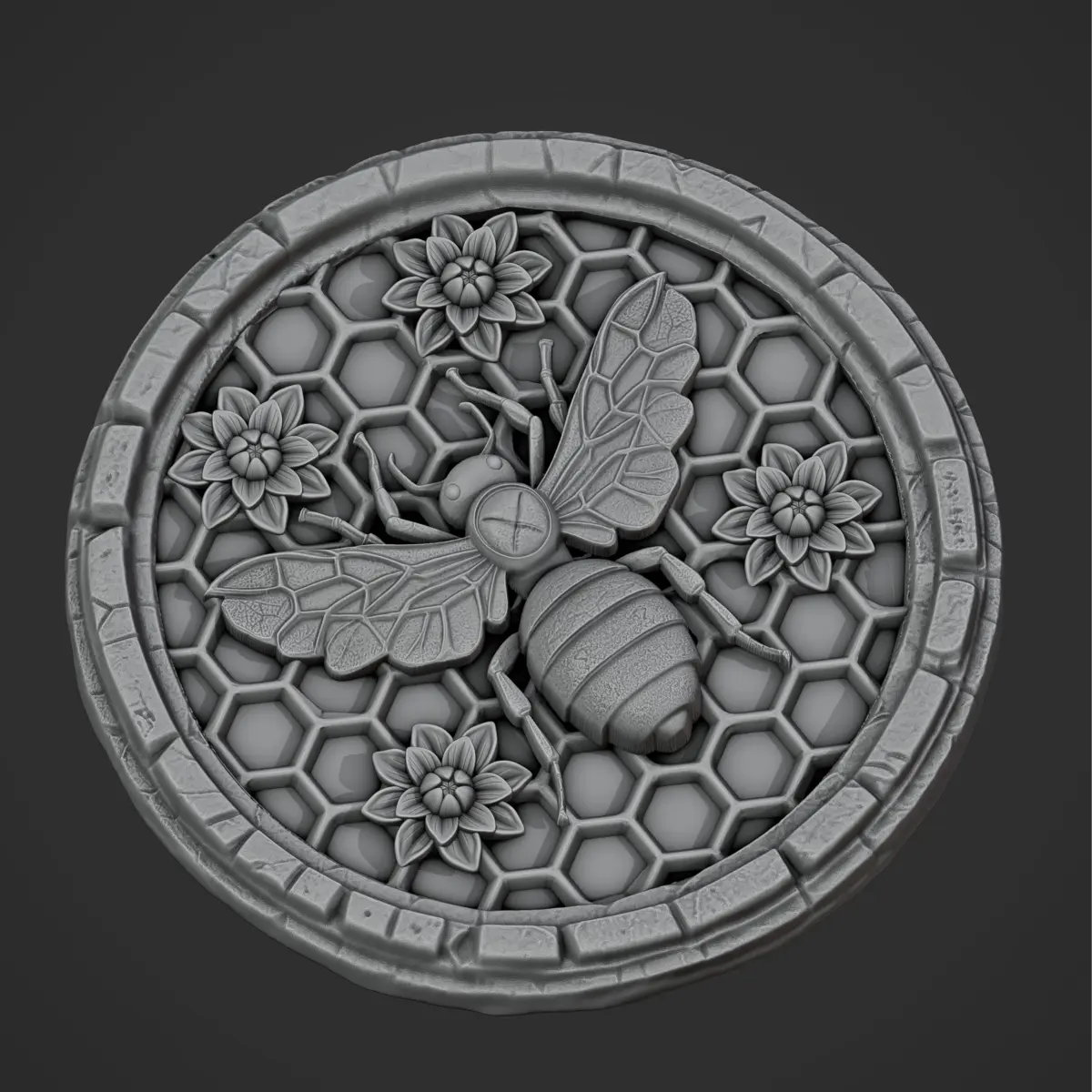 3D model features a bee centered on a honeycomb pattern, surrounded by flowers, perfect for CNC machining and 3D printing projects.