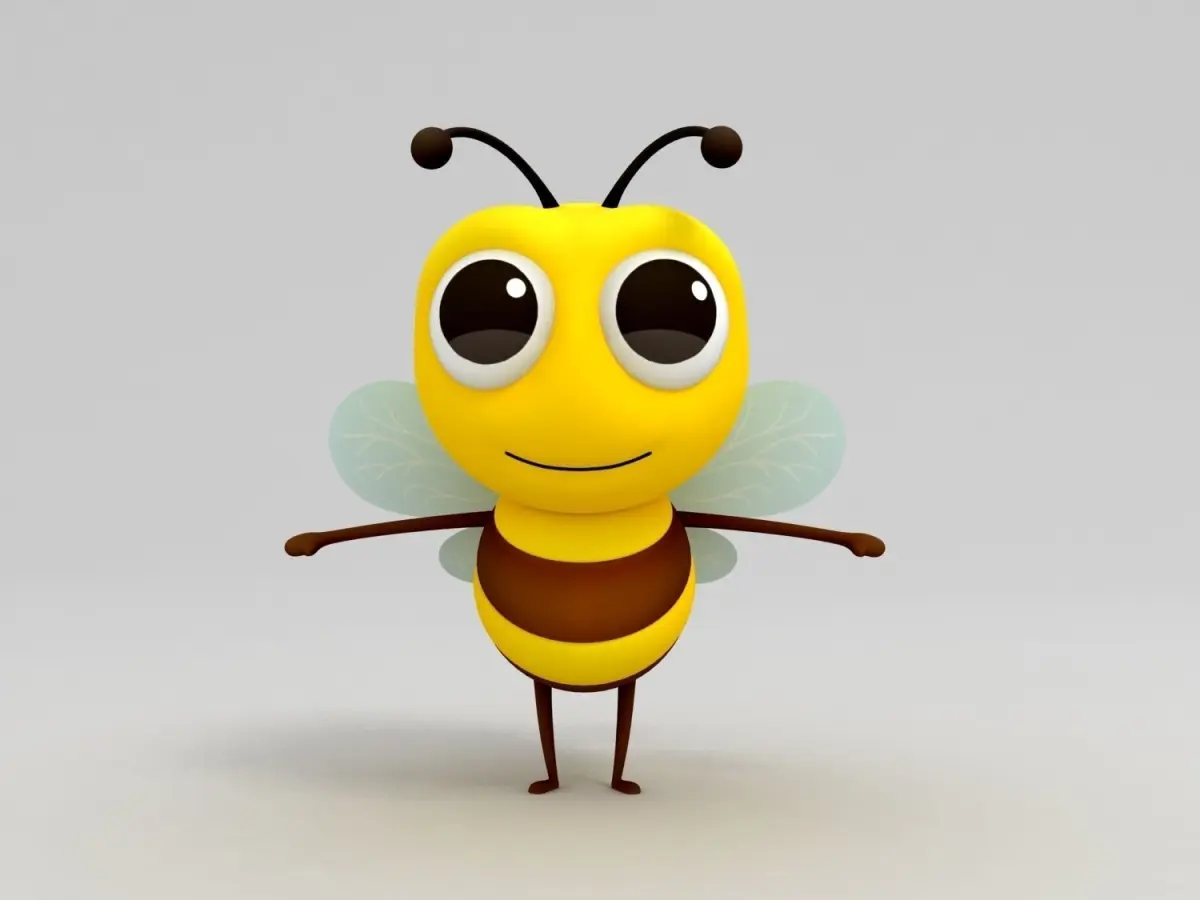 Bee character 3d model in cartoon style. Preview images are rendered with Vray.