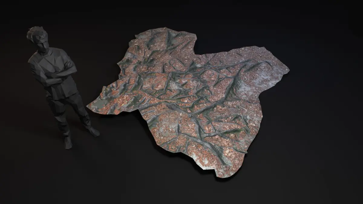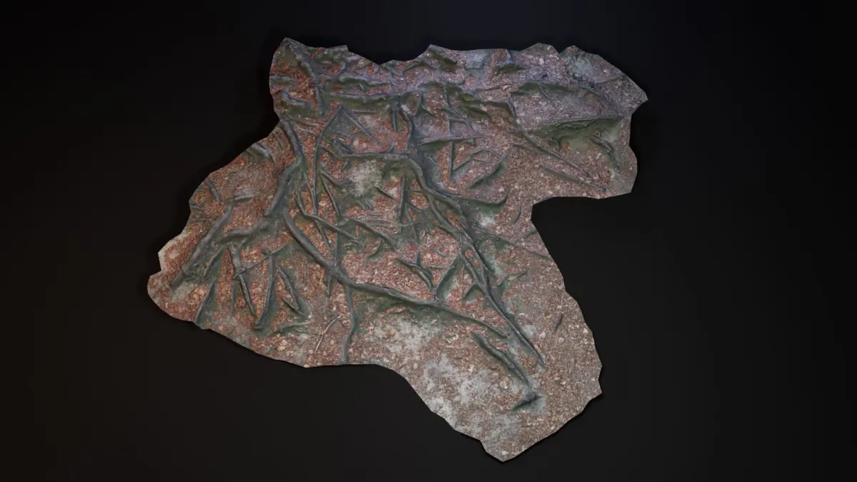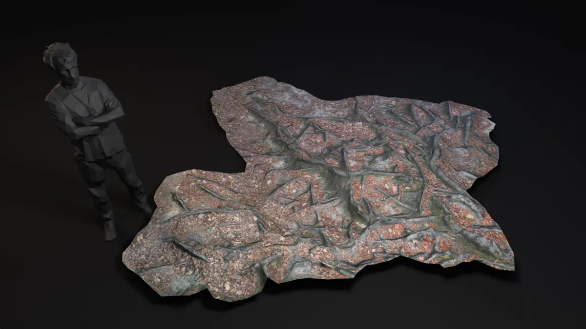 What ?Photogrammetry Scan converted to lowpoly PBRA forest ground with beech tree roots.Red, dry leaves mixed with soil.The area is viseted a lot and polished by shoes.When ?Spring / Summerovercast mitdayWhere ?Odenwald HessenEurope / Germany