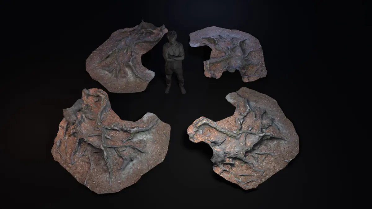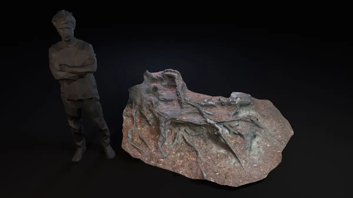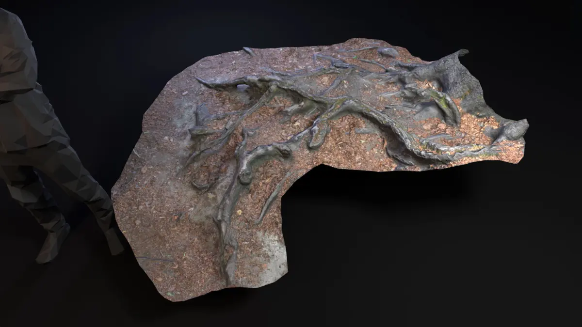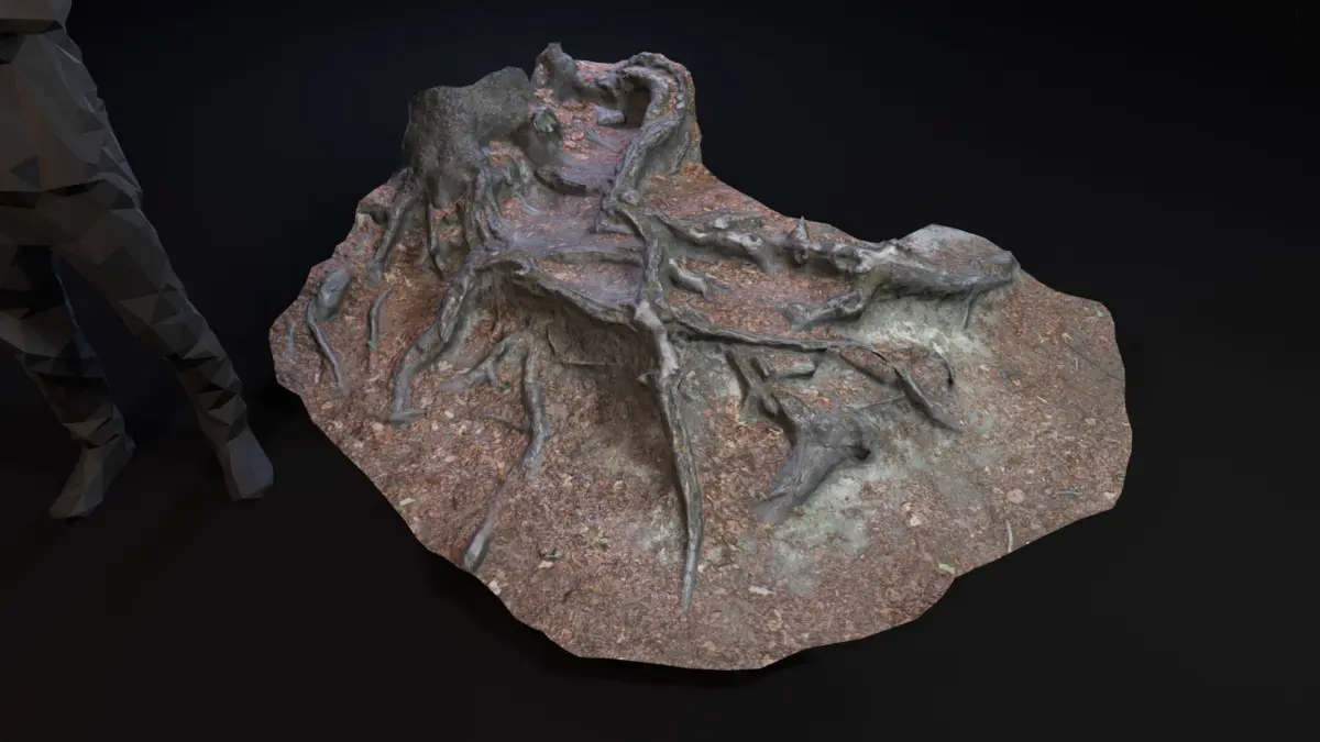 What ?Photogrammetry Scan converted to lowpoly PBRA forest ground with beech tree roots.Red, dry leaves mixed with soil.The area is viseted a lot and polished by shoes.When ?Spring / Summerovercast mitdayWhere ?Odenwald HessenEurope / Germany