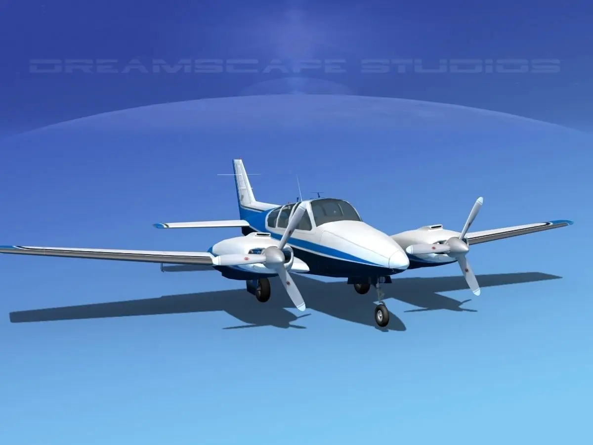 This is one of our high poly models including a lot of geometry. The model is built near to scale within a few inches of actual general dimensions. The model has interior features as moderately detailed cockpit and cabin seating that can be viewed from the exterior through the windows. Model has two 6 cylinder engines. It includes animateable features such as ailerons flaps, rudder, elevators, landing gear retraction, landing gear doors, propellers and cockpit controls. Propellers are animated.