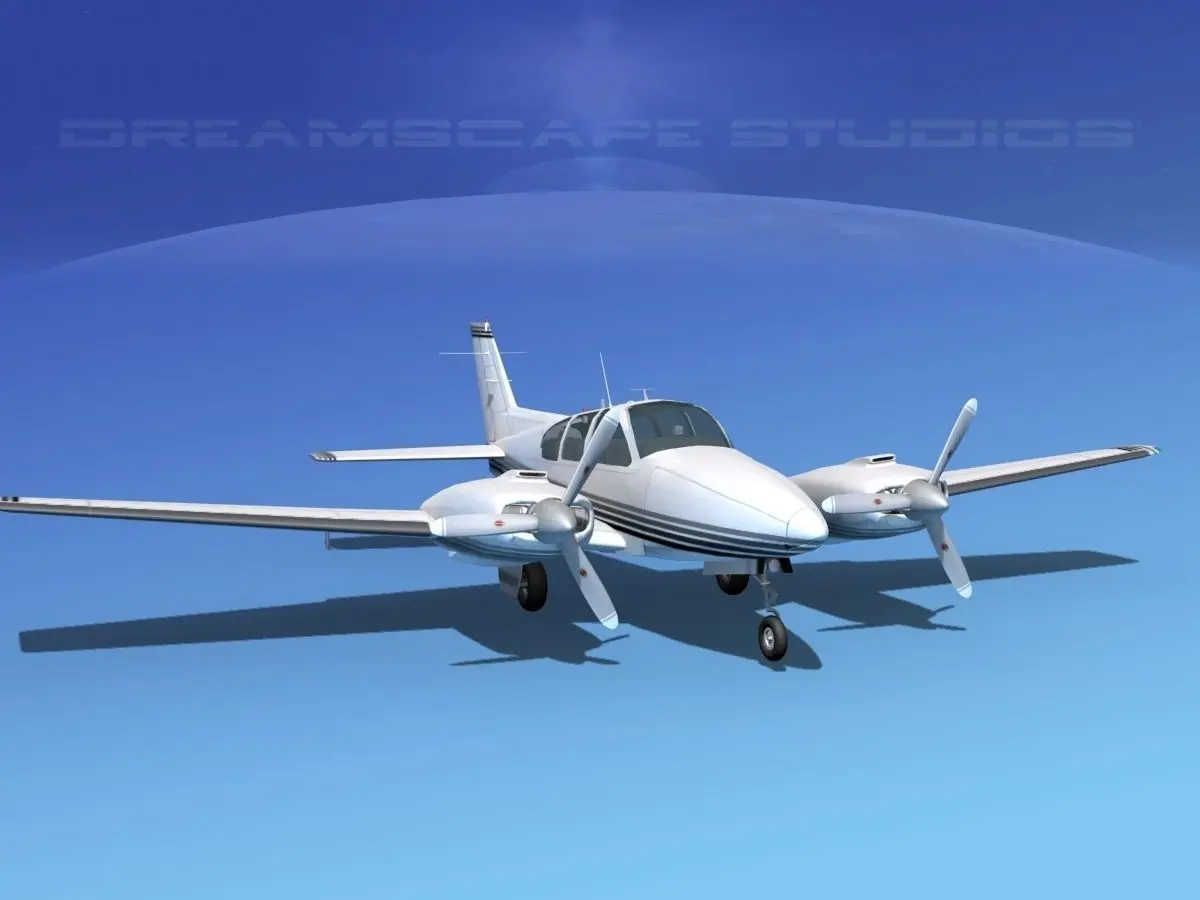 <This is one of our high poly models including a lot of geometry. The model is built near to scale within a few inches of actual general dimensions. The model has interior features as moderately detailed cockpit and cabin seating that can be viewed from the exterior through the windows. Model has two 6 cylinder engines. It includes animateable features such as ailerons flaps, rudder, elevators, landing gear retraction, landing gear doors, propellers and cockpit controls. Propellers are animated.