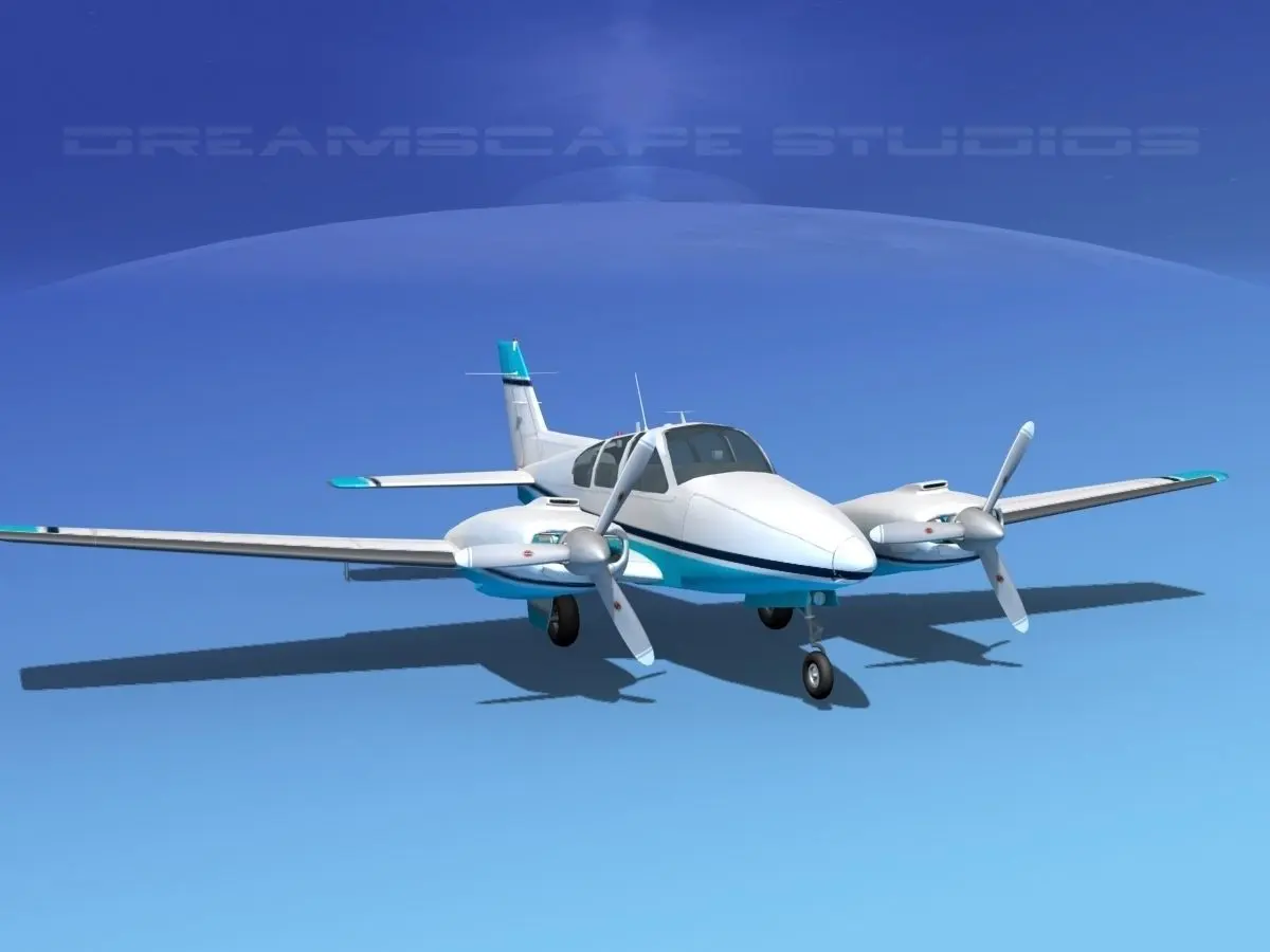 This is one of our high poly models including a lot of geometry. The model is built near to scale within a few inches of actual general dimensions. The model has interior features as moderately detailed cockpit and cabin seating that can be viewed from the exterior through the windows. Model has two 6 cylinder engines. It includes animateable features such as ailerons flaps, rudder, elevators, landing gear retraction, landing gear doors, propellers and cockpit controls. Propellers are animated.