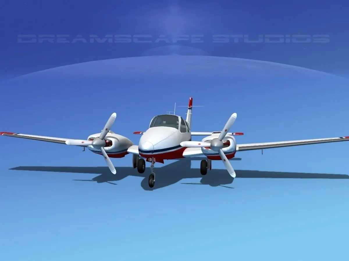 This is one of our high poly models including a lot of geometry. The model is built near to scale within a few inches of actual general dimensions. The model has interior features as moderately detailed cockpit and cabin seating that can be viewed from the exterior through the windows. Model has two 6 cylinder engines. It includes animateable features such as ailerons flaps, rudder, elevators, landing gear retraction, landing gear doors, propellers and cockpit controls. Propellers are animated.