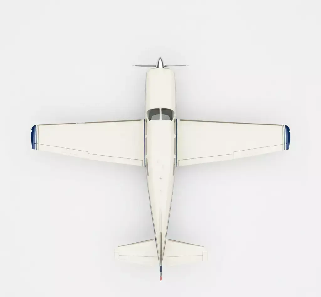 This professional-grade 3D model depicts the iconic Beechcraft Bonanza, a premier high-performance single-engine aircraft recognized for its longevity and elegant engineering. The model features the classic low-wing design and retractable tricycle landing gear, finished in a sophisticated cream and navy blue livery with gold accent striping. Every detail is rendered with precision, from the three-blade constant-speed propeller and detailed engine cowling to the expansive cabin windows that hint at a fully realized interior. Its balanced proportions and clean surfaces make it an ideal asset for flight simulators, aerospace visualizations, or high-end architectural renders requiring a touch of private aviation luxury.