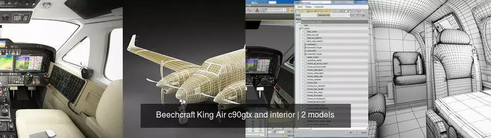 Polycount: without meshsmooth max,obj,lwo: 175 000 polygons collapsed fbx,3ds,obj: 950 000 faces/500 000 polydetailed cabin and cockpit model of Beechcraft King Air c90gtxevery object has material's name, you can easily change or apply new materialsI don't guarantee that all captions, switches, gauges and other items are 100% accurate.max format: Rar archive contains two scenes