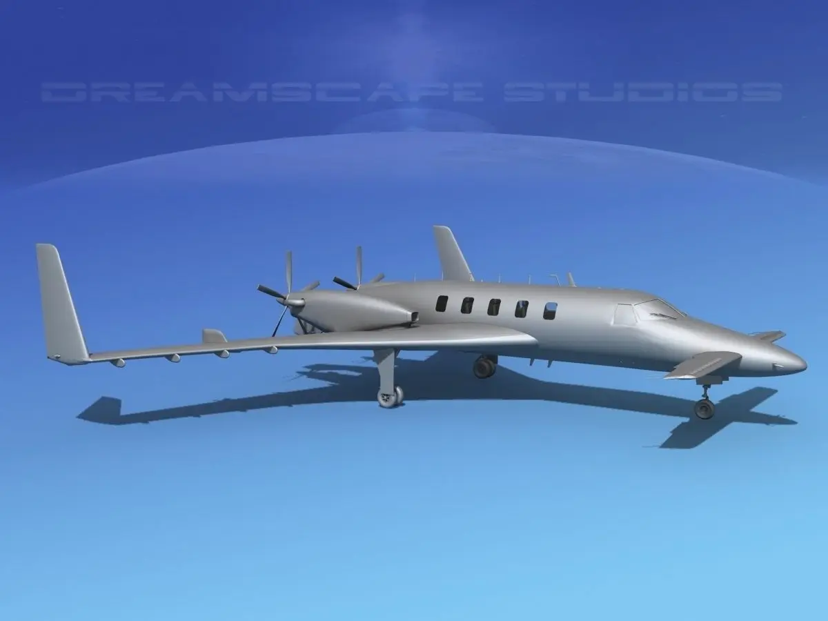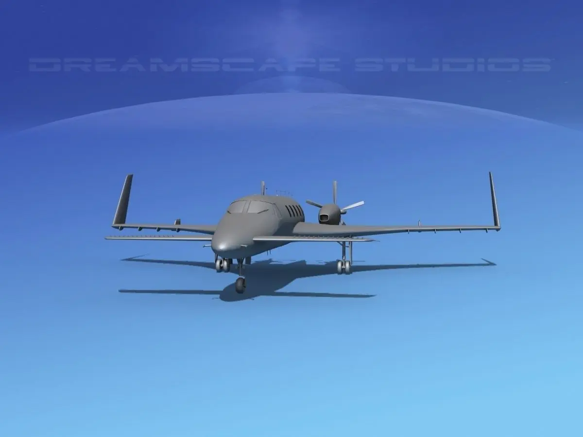 The model includes animatable propellers, retracting landing gear and doors, and all control surfaces. Wing fences, and static lines are also modeled. The radio antenna array, GPS and other antennas are all modeled. Taxi and landing lights are included in the model on both nose gear and wing tips. NAV lights and beacons are also evident.