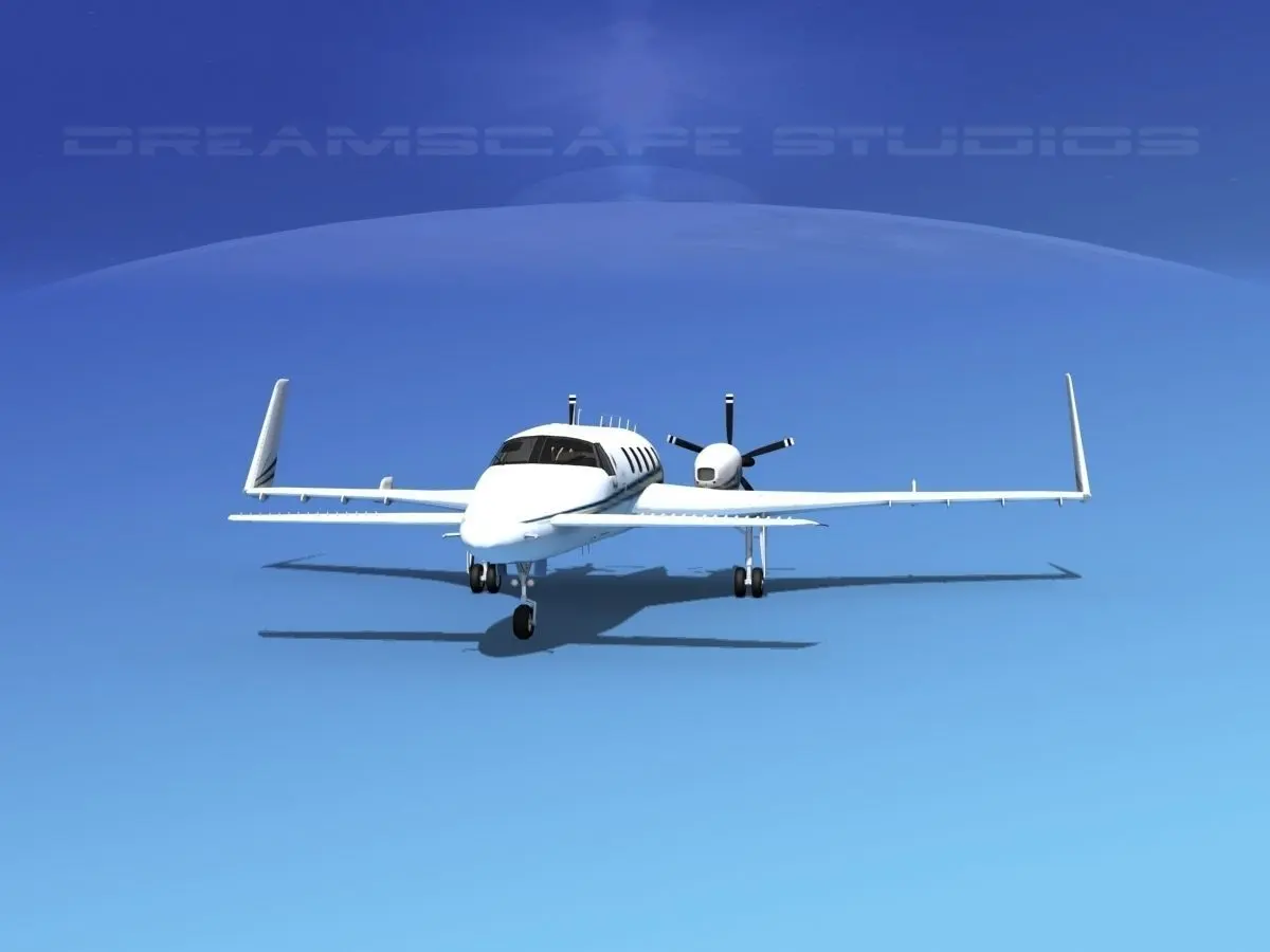 The model includes animatable propellers, retracting landing gear and doors, and all control surfaces. Wing fences, and static lines are also modeled. The radio antenna array, GPS and other antennas are all modeled. Taxi and landing lights are included in the model on both nose gear and wing tips. NAV lights and beacons are also evident.