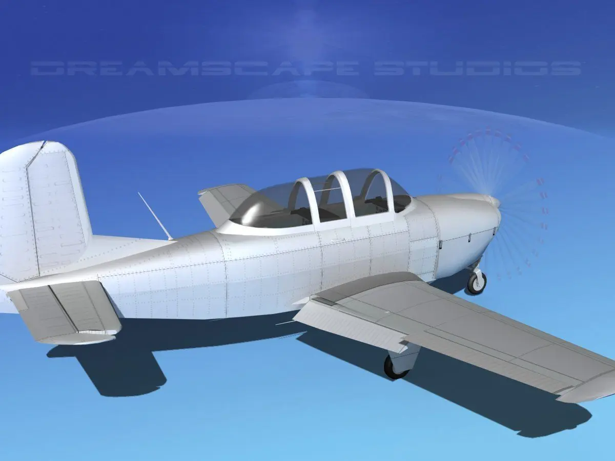 Beechcraft T-34 Mentor Bare Metal This model was originally built in Max 7 in 2006. It is near to scale (within 3-4% of scale) and fully textured. It has been updated using Max 11 in 2017 with high quality smoother mesh, more detail, better cockpits, better textures and higher quality diffuse mapping. 95 percent of all the mesh has been replaced or heavily modified. It comes with all the materials and textures shown in renderings here. It is available in several formats for a wide variety of end users. This model comes with many different liveries. It is built to be used in in-flight or airport ground animations and video or simulation. It can also be used to populate an airport scene. The model has animated propeller. It also has animateable ailerons, flaps, rudder, and elevators. The cockpit is semi detailed including control yokes grips engine controls rudder pedals seating and instrument panel. This model also has animated control surfaces including ailerons, elevators, rudder and flaps. These are animated through their nominal range of motion. In addition the propeller is animated at idle speed.