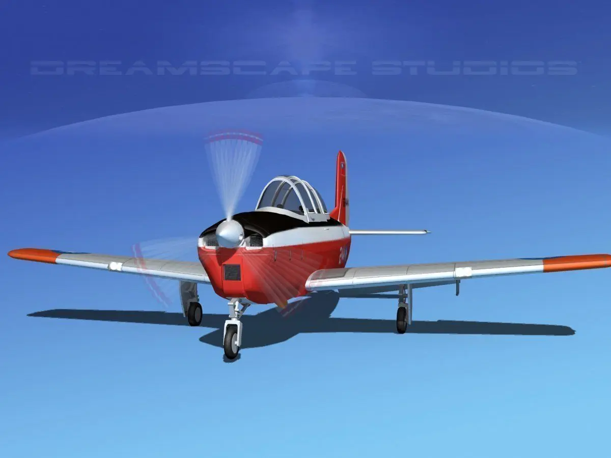 Beechcraft T-34 Mentor Taiwan This model was originally built in Max 7 in 2006. It is near to scale (within 3-4% of scale) and fully textured. It has been updated using Max 11 in 2017 with high quality smoother mesh, more detail, better cockpits, better textures and higher quality diffuse mapping. 95 percent of all the mesh has been replaced or heavily modified. It comes with all the materials and textures shown in renderings here. It is available in several formats for a wide variety of end users. This model comes with many different liveries. It is built to be used in in-flight or airport ground animations and video or simulation. It can also be used to populate an airport scene. The model has animated propeller. It also has animateable ailerons, flaps, rudder, and elevators. The cockpit is semi detailed including control yokes grips engine controls rudder pedals seating and instrument panel. This model also has animated control surfaces including ailerons, elevators, rudder and flaps. These are animated through their nominal range of motion. In addition the propeller is animated at idle speed.