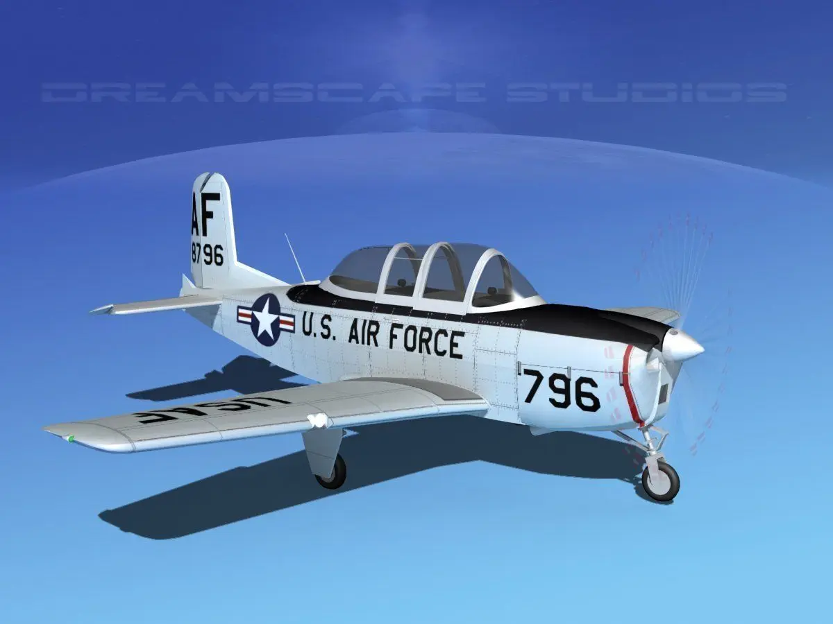 The Beechcraft T-34 Mentor was designed to meet a requirement for an advanced trainer to replace the aging trainers from the WWII era. The Mentor was a development of the Beechcraft Bonanza having the four place cabin removed and the tandom two seat fight like cockpit replacement. It is agile and fast, a good performance trainer that gave students instruction and experience at more complex aircraft. The T-34s were in production from the 1950s until the mid 1960s. They were phased out of the USAF, Navy and USMC inventories in the 1970s. Many were sold to other countries and some were transferred to the Civil Air Patrol.