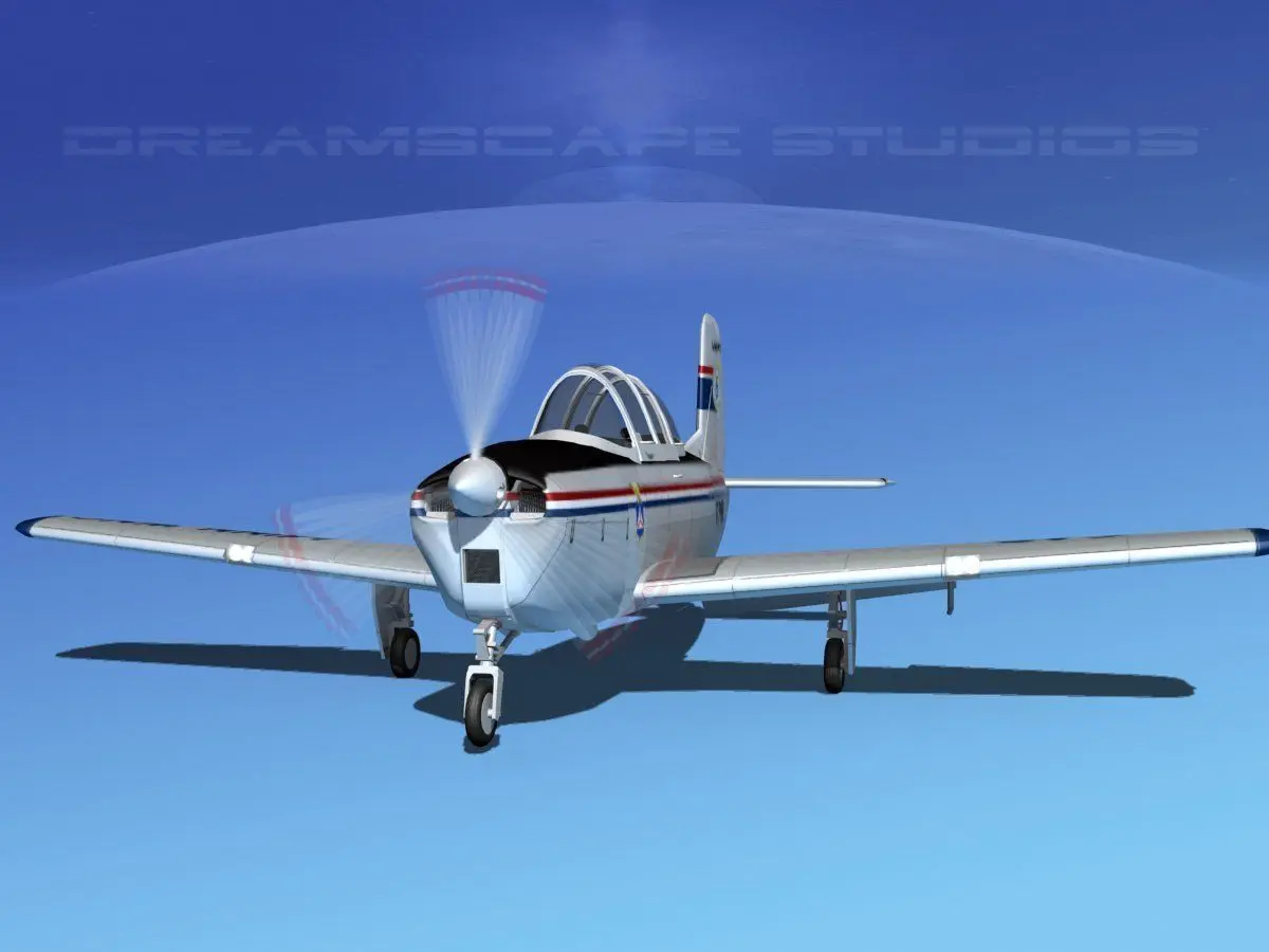 Beechcraft T-34 Mentor V29 CAP Minn This model was originally built in Max 7 in 2006. It is near to scale (within 3-4% of scale) and fully textured. It has been updated using Max 11 in 2017 with high quality smoother mesh, more detail, better cockpits, better textures and higher quality diffuse mapping. 95 percent of all the mesh has been replaced or heavily modified. It comes with all the materials and textures shown in renderings here. It is available in several formats for a wide variety of end users. This model comes with many different liveries. It is built to be used in in-flight or airport ground animations and video or simulation. It can also be used to populate an airport scene. The model has animated propeller. It also has animateable ailerons, flaps, rudder, and elevators. The cockpit is semi detailed including control yokes grips engine controls rudder pedals seating and instrument panel. This model also has animated control surfaces including ailerons, elevators, rudder and flaps. These are animated through their nominal range of motion. In addition the propeller is animated at idle speed.