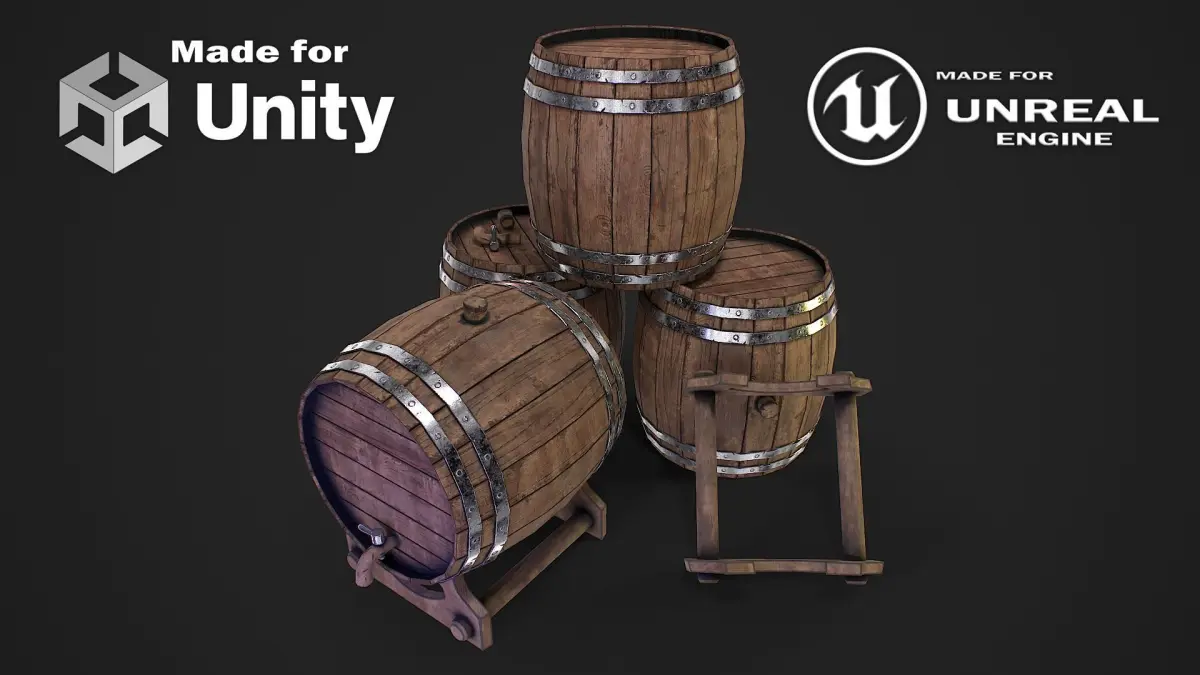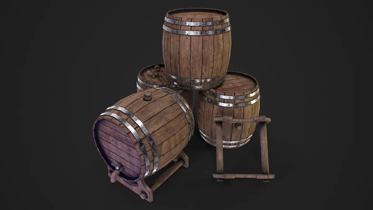 Hello. This is a high definition quality polygon of a Beer barrels 3D Model with PBR textures. Extremely detailed and realistic. Suitable for movie prop, architectural visualizations, advertising renders and other. The archive includes Obj and FBX, Marmoset scene, textures for the Unity: Base color, Height, Metallic, Mixed AO, Normal_OpenGL, Roughness. And also included in the archive textures for UE: BaseColor, Normal, OcclusionRoughnessMetallic. All textures are 4k resolution. The number of materials corresponds to the number of main objects in the scene. The model contains 14 object: barrel, barrel_stopper, barrel_stopper001, barrel_stopper002, barrel_stopper003, barrel_tap, barrel_tap_handle, barrel_tap_handle001, barrel_tap001, barrel001, barrel002, barrel003, stand_for_barrel, stand_for_barrel001,
