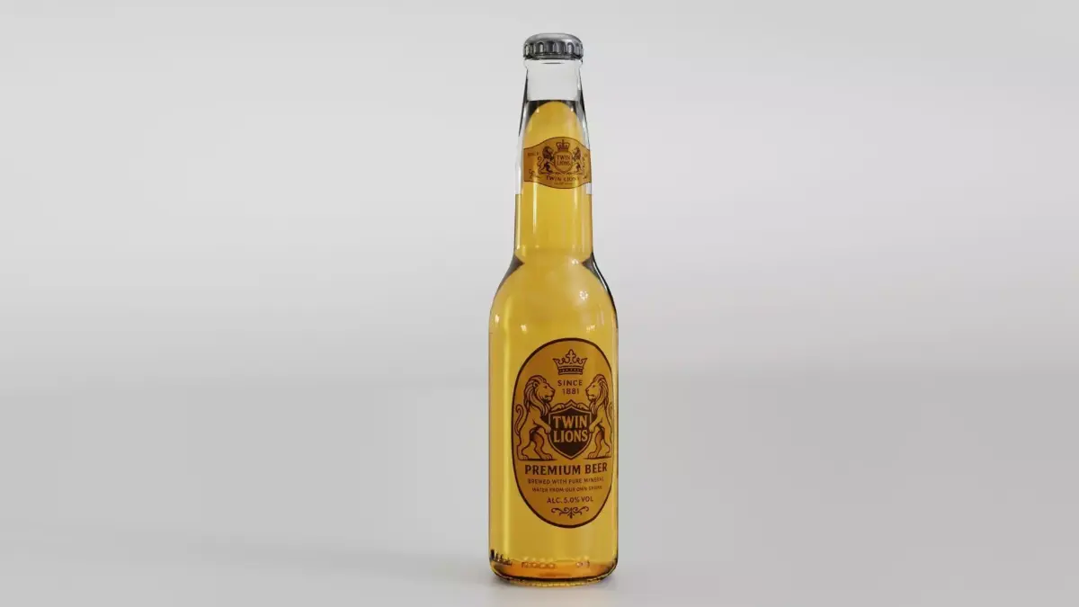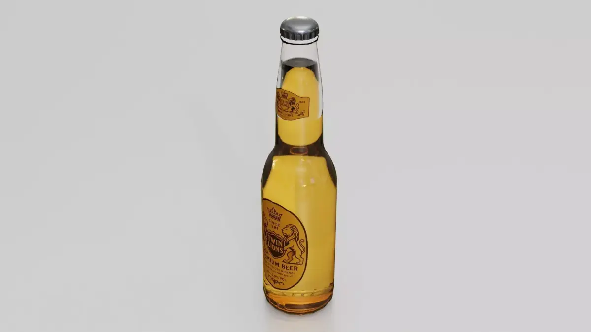 Photorealistic, high-quality 3D model of 'Beer Bottle Two Lions Brand' Created with Blender 4.4. The model is suitable for Ultra HD rendering and ready for close up shots.The model rendering quality shown on product previews.
