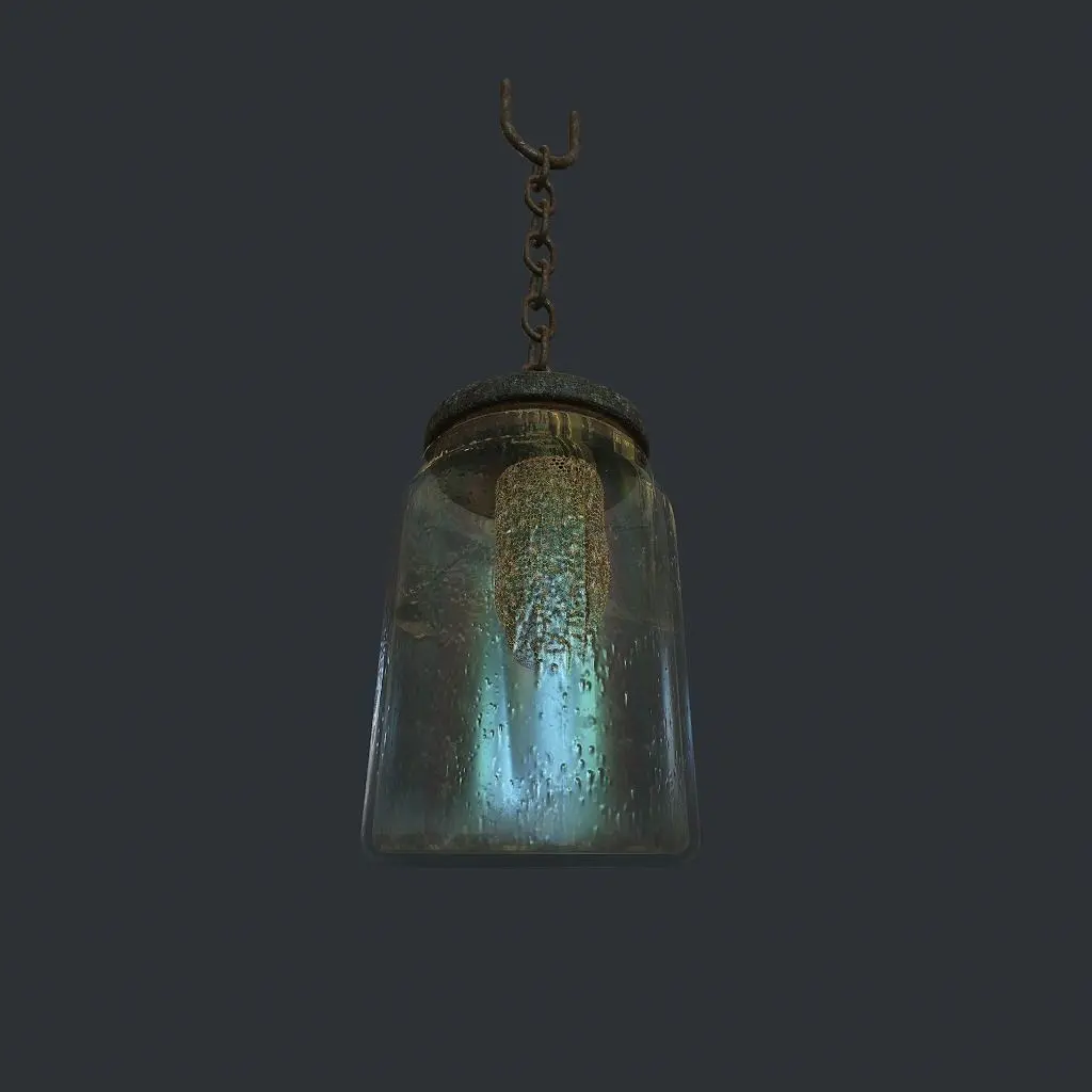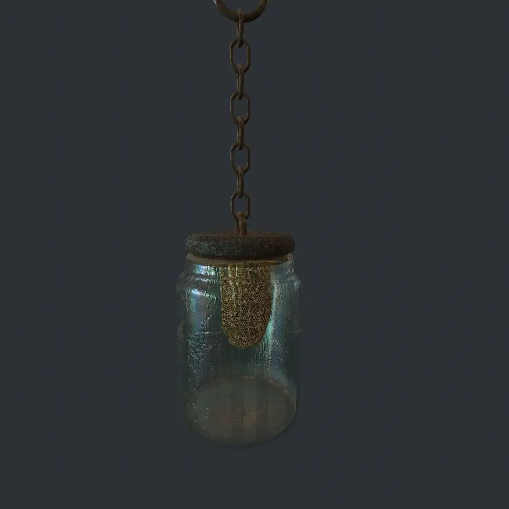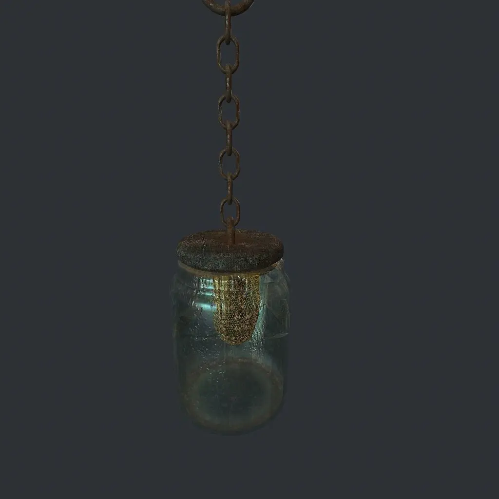 Chain,glass and hives are separated objects. It has two sets of reflective textures for materials: dirty and more shiny. The model is rigged and animated