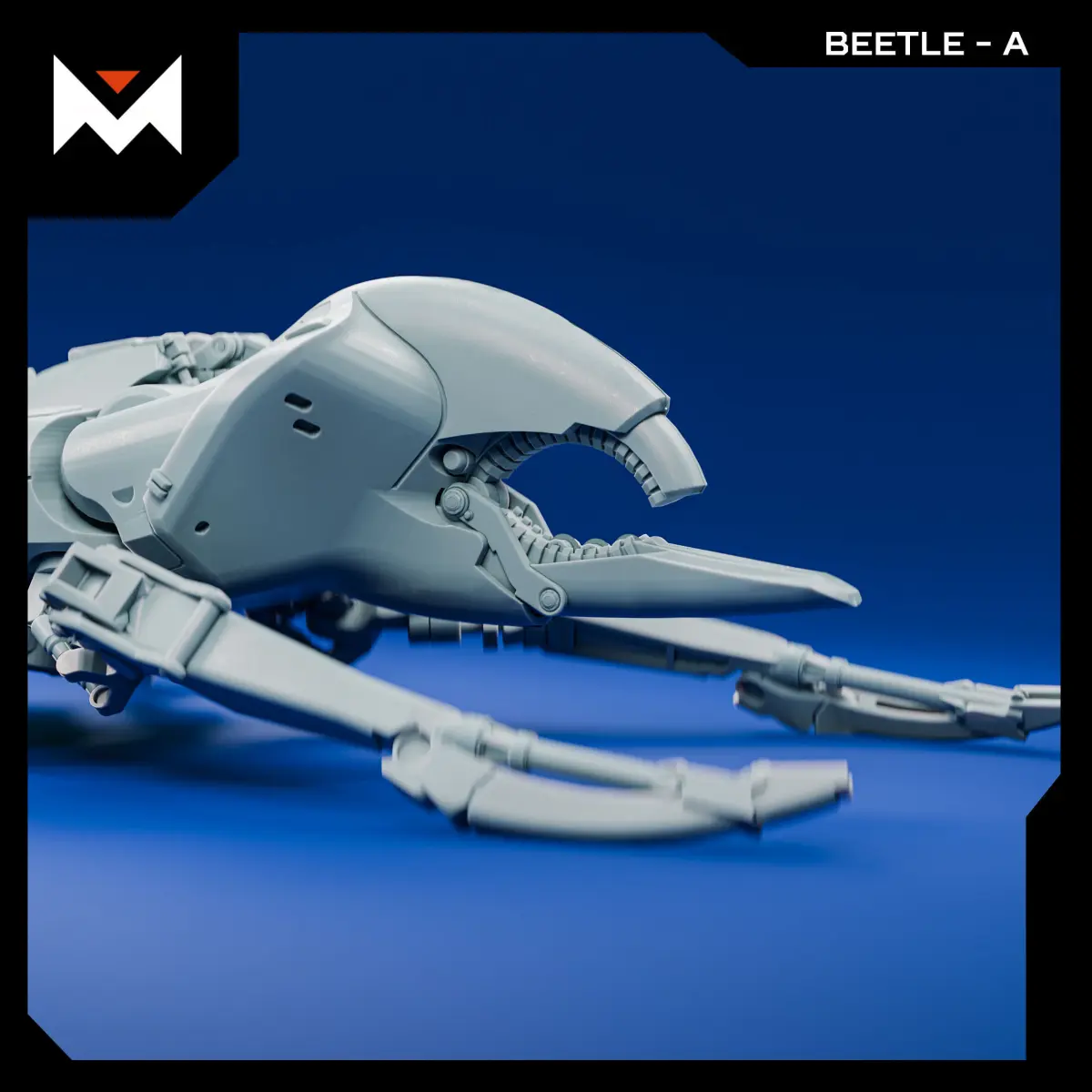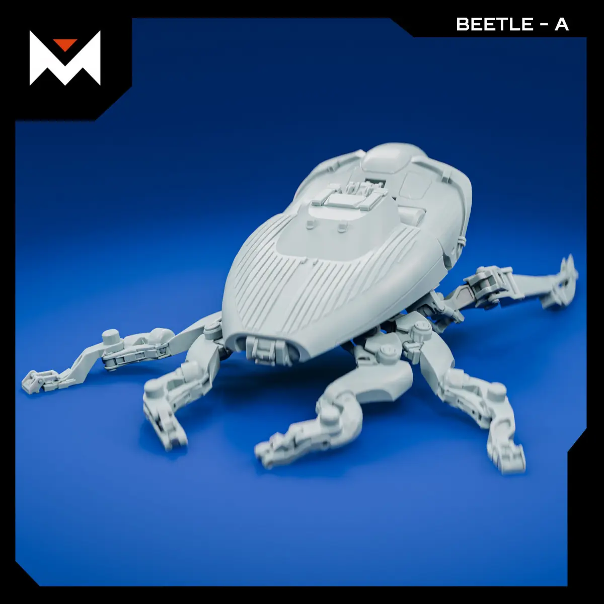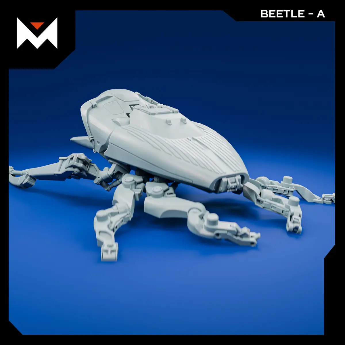 A mechanical insectoid automaton inspired by the Flores Island rhino beetle. Designed for 1:72 scale, though you’re free to scale it up or down to suit your display or diorama needs. Composed of 8 individual parts.