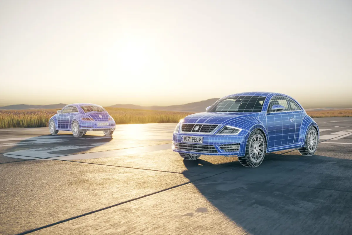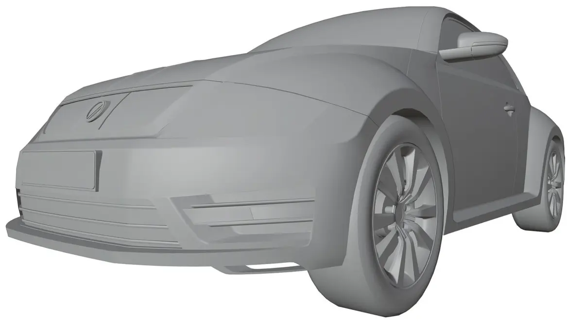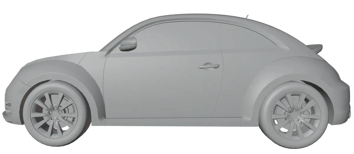 This 3D model includes the small blue car stylized to Volkswagen Beetle. Model prepared for 3d architectural visualisations and other graphic works.