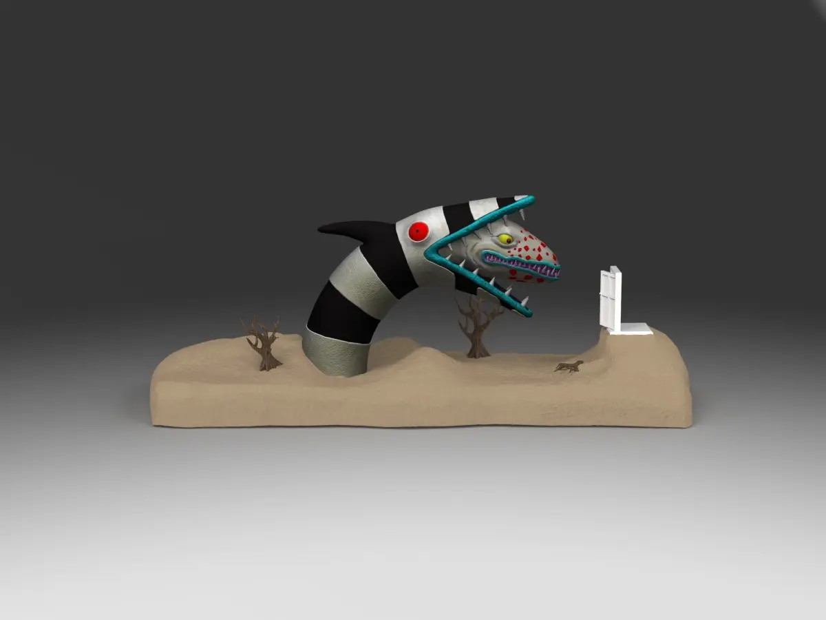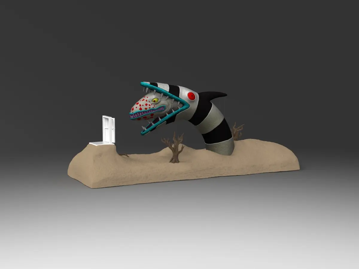 Beetlejuice Sandworm Diorama, split in 2 pieces optimized for resin printing. Combined parts 4.5million poly. Currently the base is about 5 inches long or around 130mm, for reference. Scale up or down as needed. 3MF files decimated to 250k before converting. If you need this split or keyed into more parts let me know.