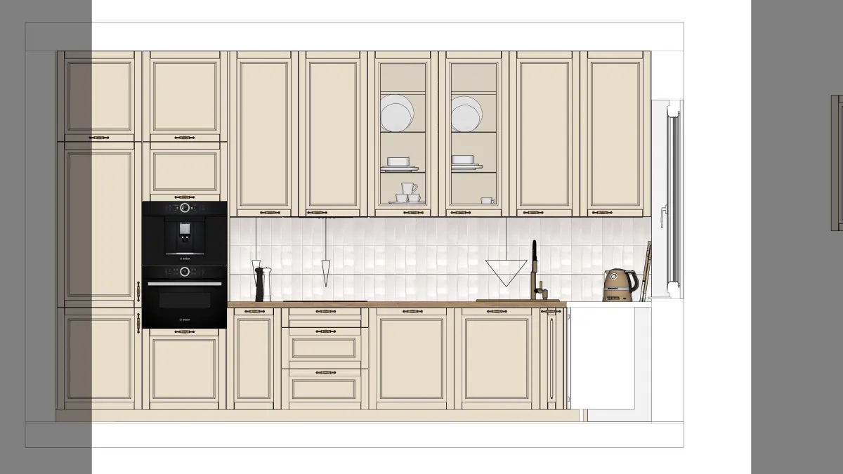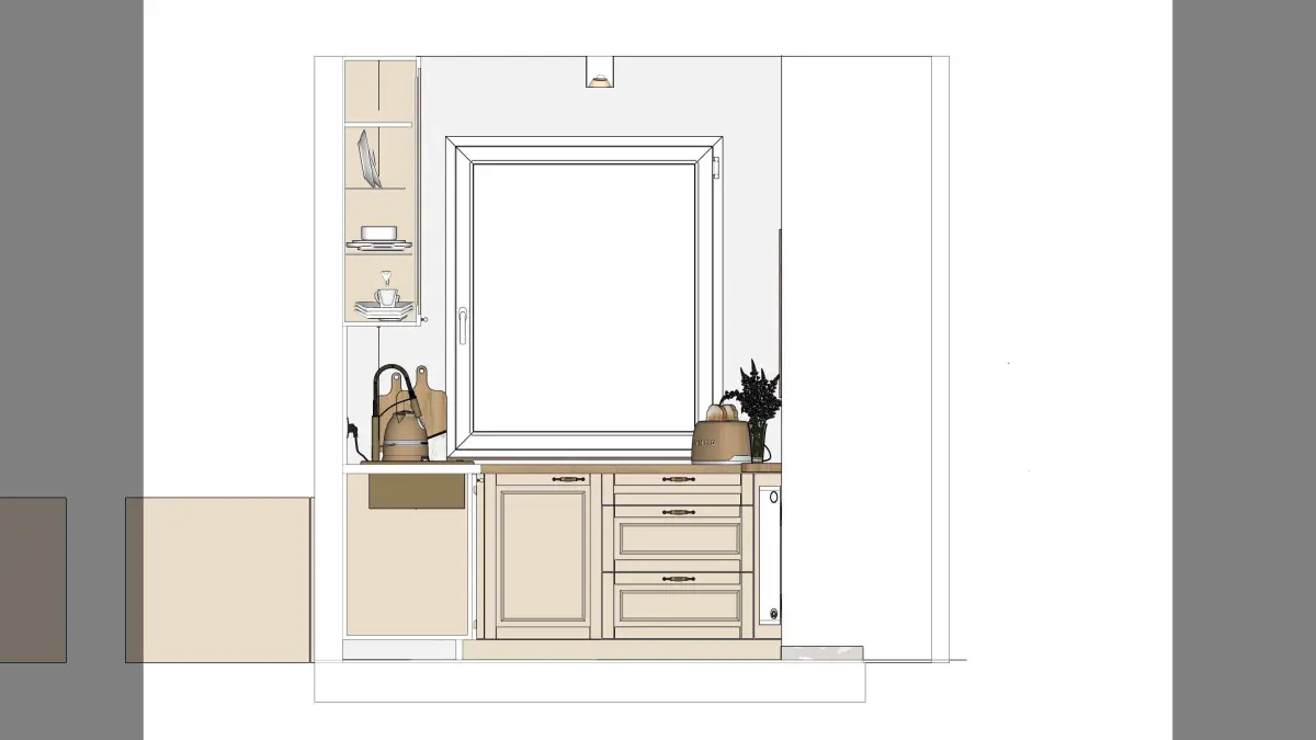 - Hq wooden texture on countertop and floor - 3d scene interior (wall, floor, ceiling, window) - AEG Oven - Color of the kitchen ICA 0253 Grigia Fumo - Model is built to real-world scale - Built-in Sink model - Simple-polygon fridge lg - Cabinets are empty model (no interior included) - Units used: mm - Scene objects are organized by groups (sketchup model)