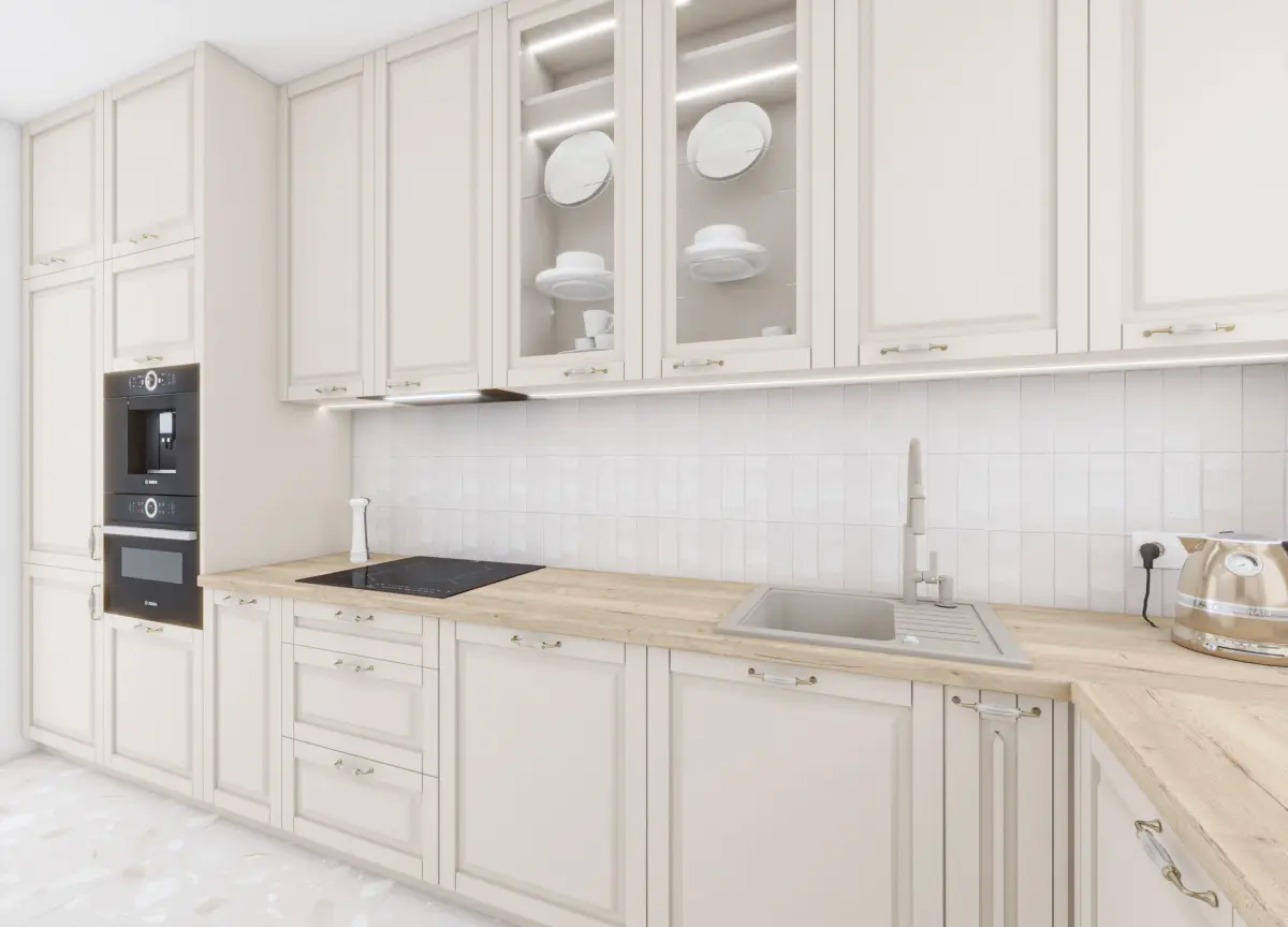 Beige Kitchens: Beige is a great choice for those who want a neutral-toned kitchen that can be accessorized with other colors. Modern beige cabinets are clean and practical, and will match well with almost any type of kitchen flooring, countertops, walls, and furnishings. If you want to keep a wide range of decorating options available to you in the future, then a beautiful beige kitchen is a great starting point!
