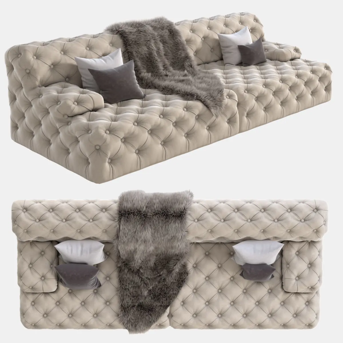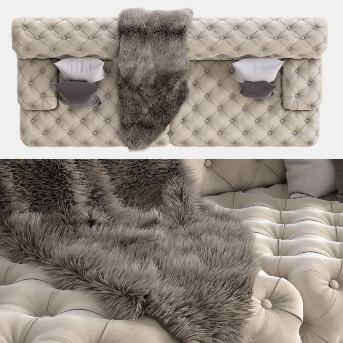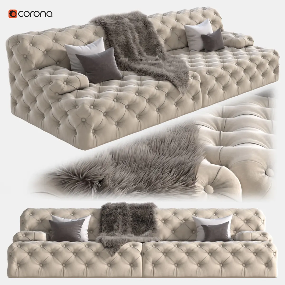 Archives included:3Ds Max fileFBXMapsHair and fur setting……….A turbo smooth modifier has been applied to the main body of the sofaSystem Units Setup - CentimeterssRendering> Effects> Hair and Fur> Hairs> mr prim.....................Note: This product uses the proprietary assets of 3D Max software that may not be usable in other software.