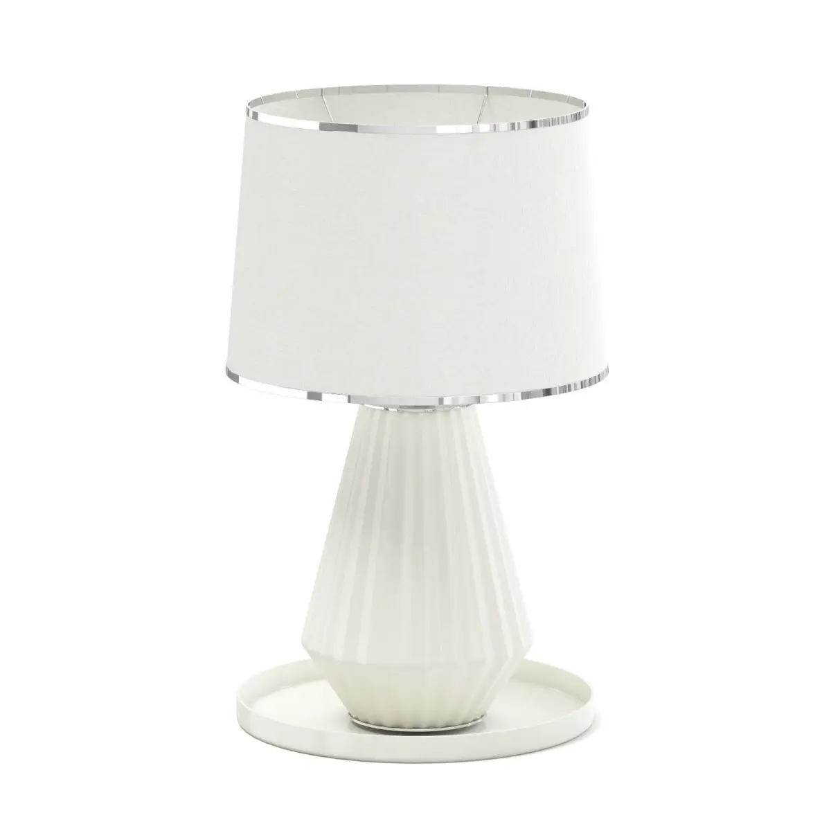 Beige table lamp 3d model with metal elements and a tray. Compatible with 3ds max 2010 (V-Ray, Mental Ray, Corona) or higher, Cinema 4D R15 (V-Ray, Advanced Renderer), Unreal Engine, FBX and OBJ.