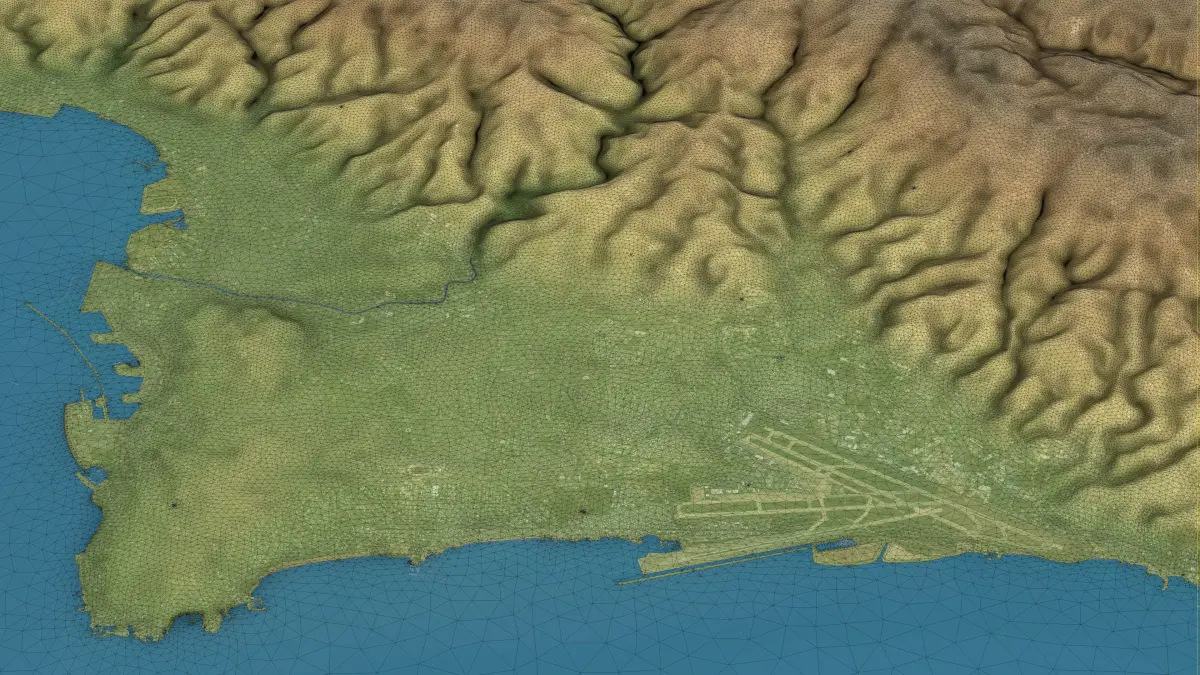 - Optimized Triangular Mesh — Separate land surface and water bodies