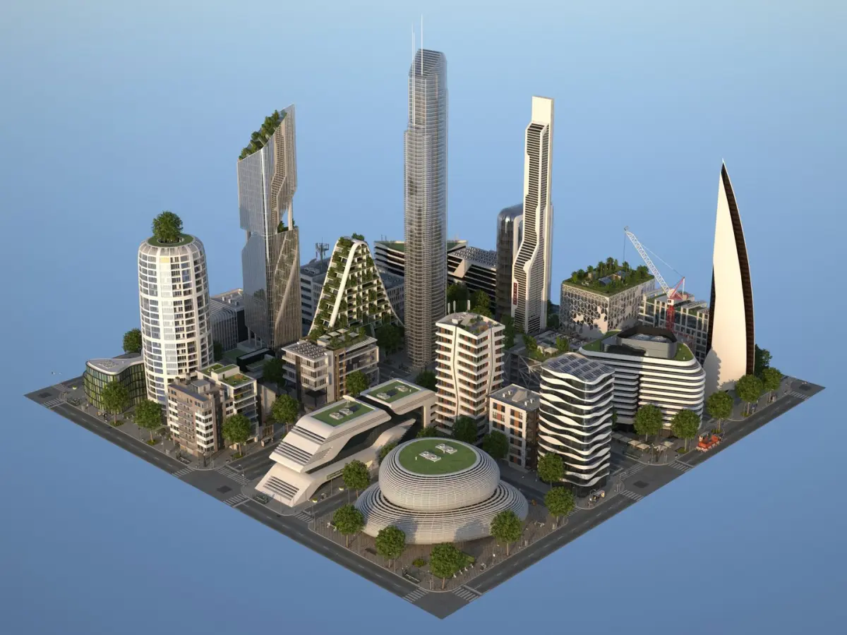Highly detailed modular city containing detailed buildings, road tiles, street furniture, textures and more.