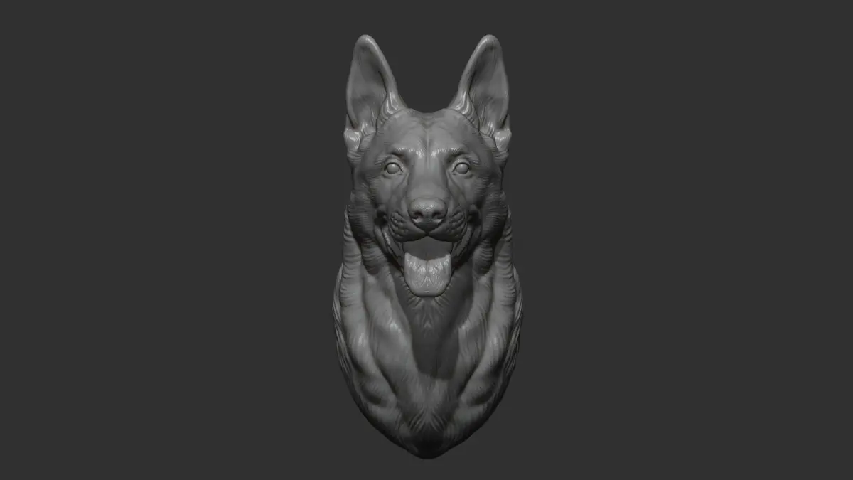 500K STL, OBJ triangulated mesh, Belgian Shepherd Malinois bust on the wall