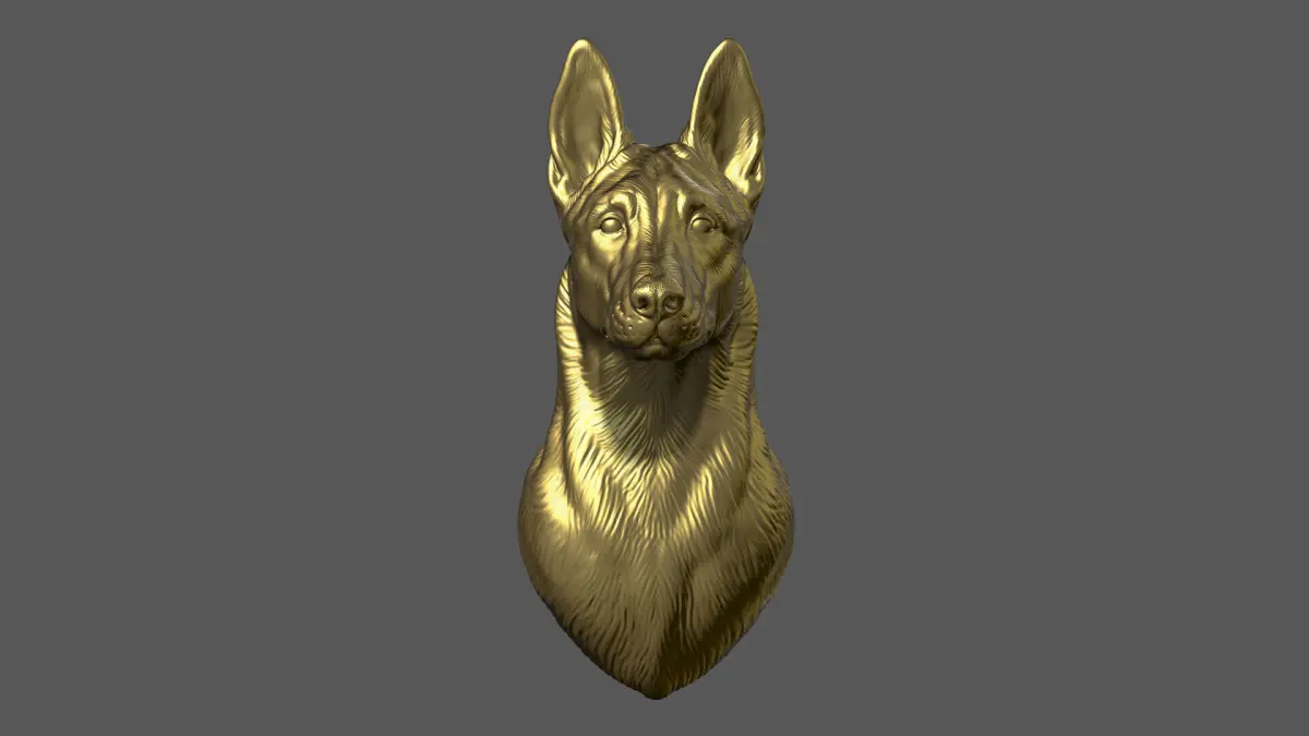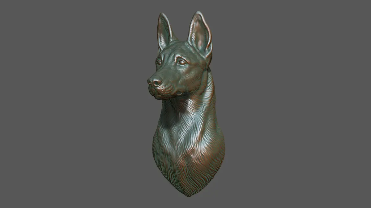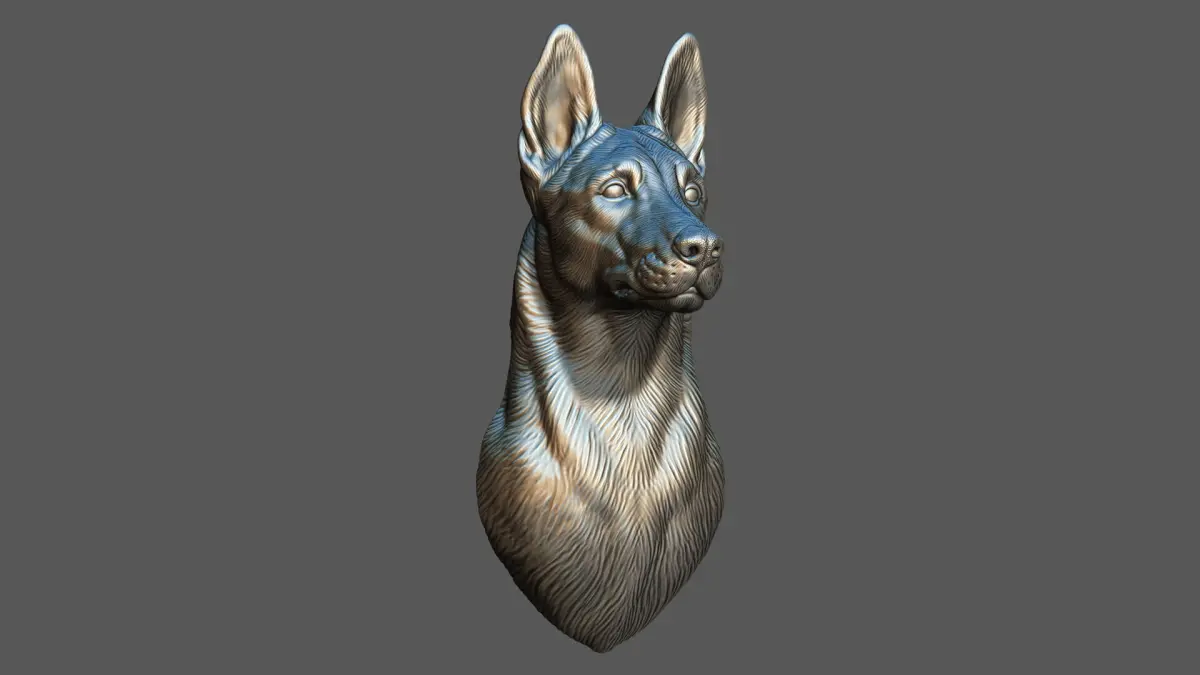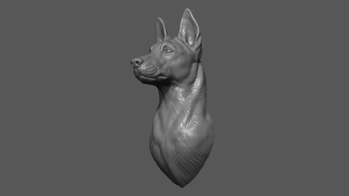 500K STL, OBJ triangulated, Belgian Shepherd Malinois with a closed mouth on the wall