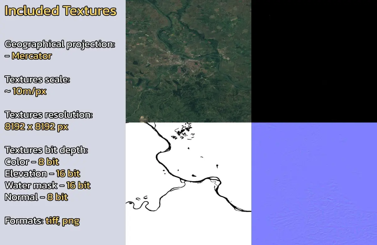 Warning: minor clouds/artifacts may be present on the diffuse color satellite texture due to the nature of the dataset. Check product images.