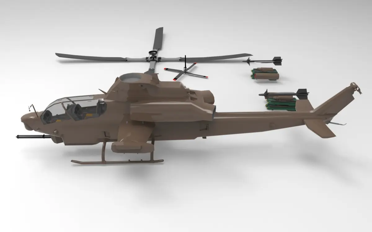 The Bell AH-1Z is an American twin-engine attack helicopter, based on the AH-1W SuperCobra, which was developed for the United States Marine Corps as part of the H-1 upgrade program. The AH-1Z features four blades, no bearings, a composite main rotor system, an upgraded transmission, and a new target sighting system. [3] The AH-1Z, one of the newest members of the prolific Bell Huey family, is also called the Zulu Cobra, based on the military phonetic pronunciation of its letter variants.