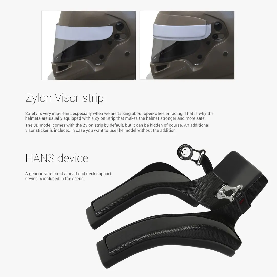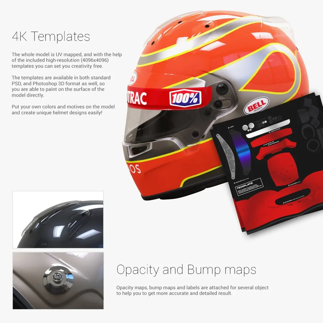 High-poly, ultra-realistic racing helmet model in Bell HP7 style.