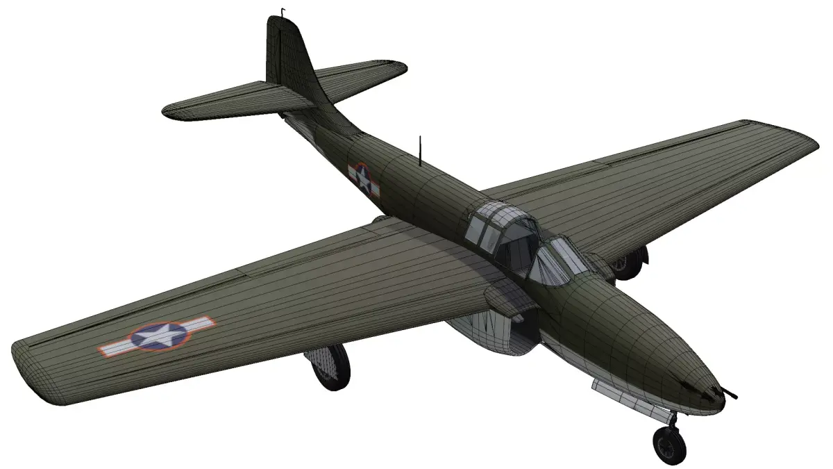 The Bell P-59 Airacomet is a high quality, photo real model that will enhance detail and realism to any of your rendering projects. This model represents America's first jet-powered aircraft, featuring its distinctive twin-engine mid-wing design and tricycle landing gear as used during initial flight testing.The model has a fully textured, detailed design that allows for close-up renders. Renders have no postprocessing.